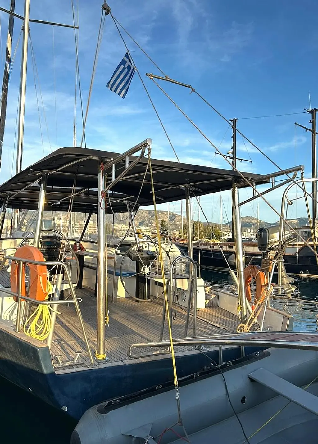 Generator, Luftkonditionering, solpaneler, Gummibåt, Sittbrunnshögtalare, Värmare, Soltak, Teakdäck, Kylskåp, Sprayhood