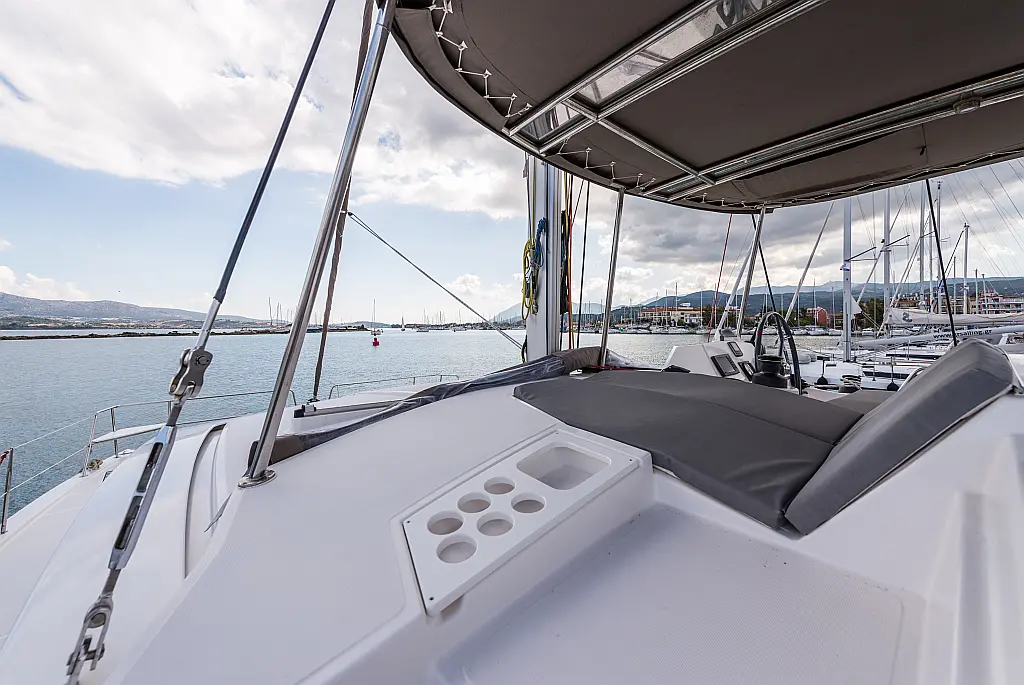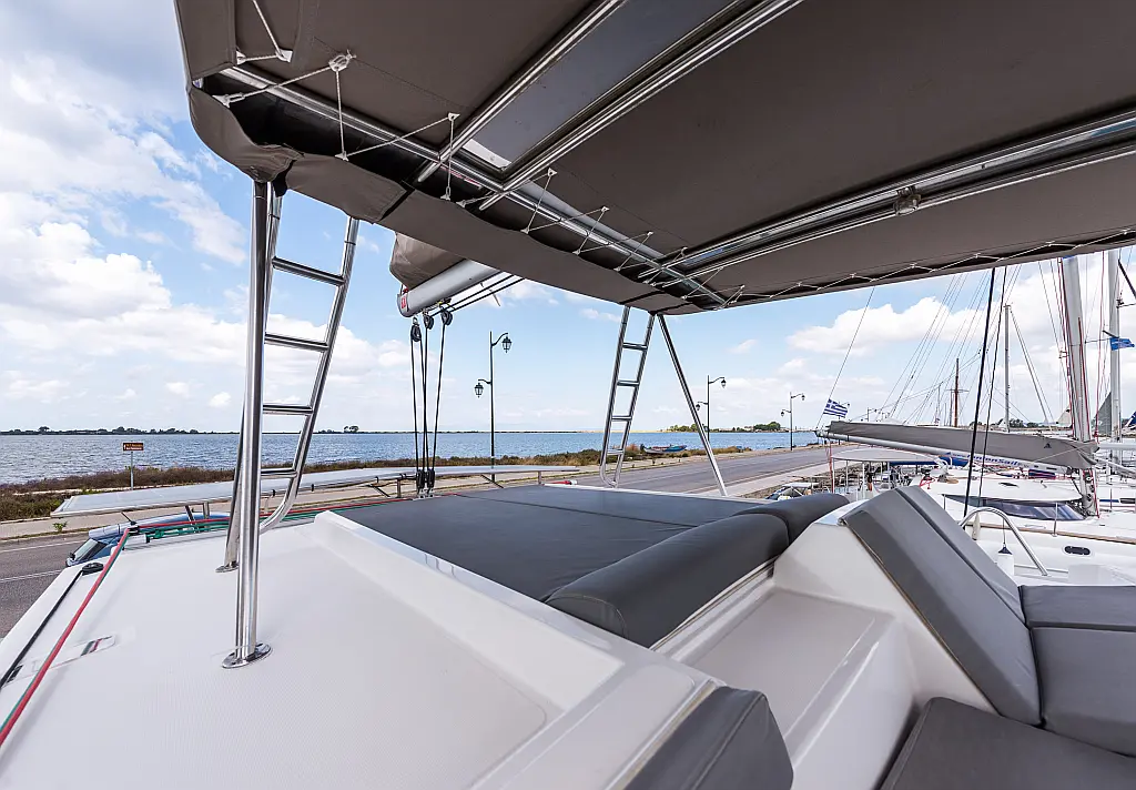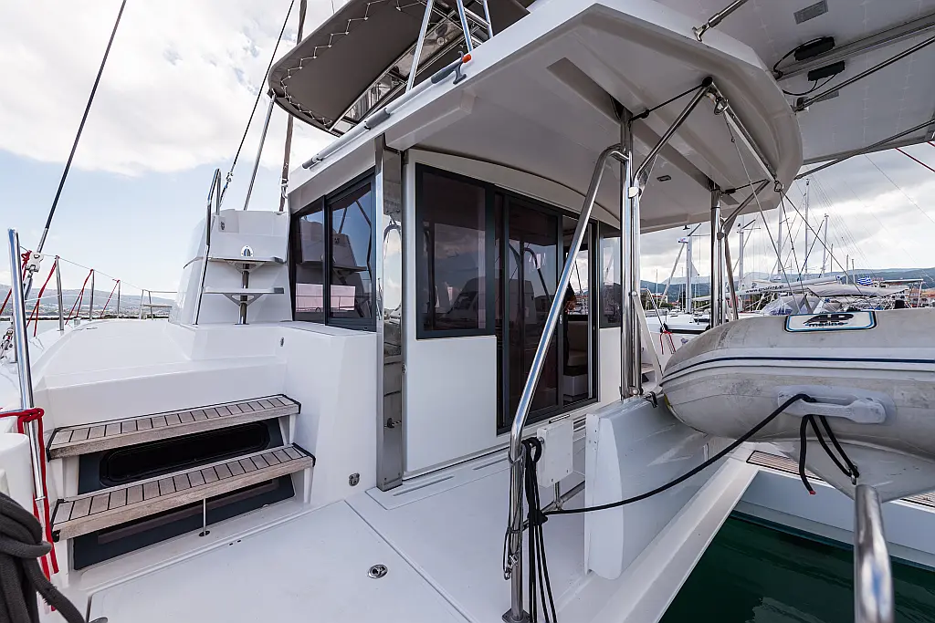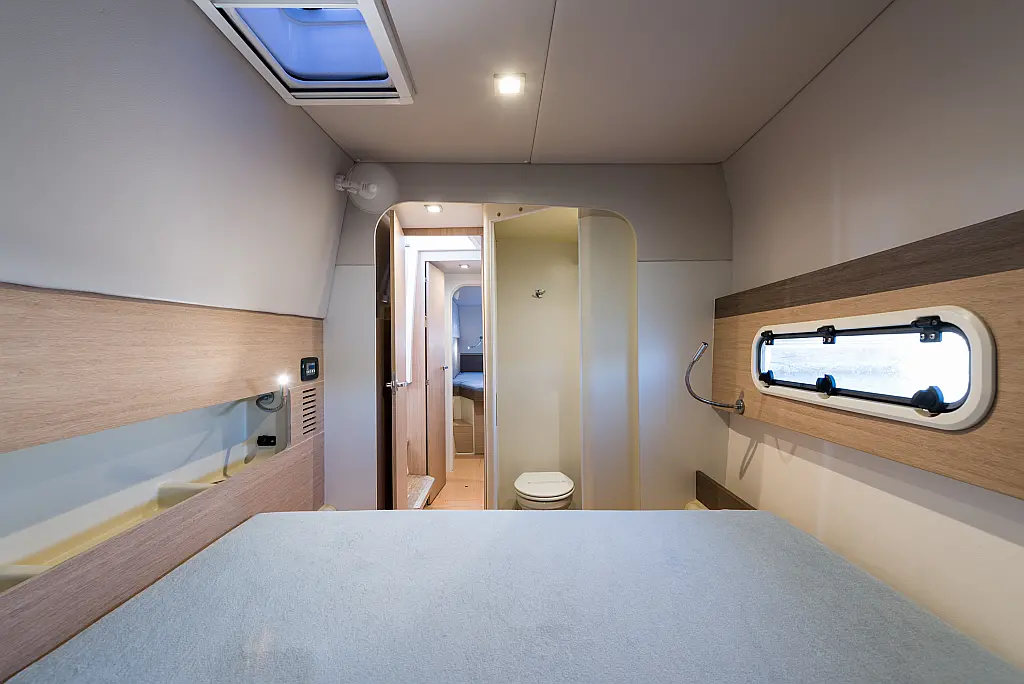 Fäkalientank, Bimini, Beiboot, Elektrische Winch (Segel), Elektrische Toilette, Klimaanlage, Generator, Cockpit-Kissen, Sprayhood, Badeplattform, Solar-Panele