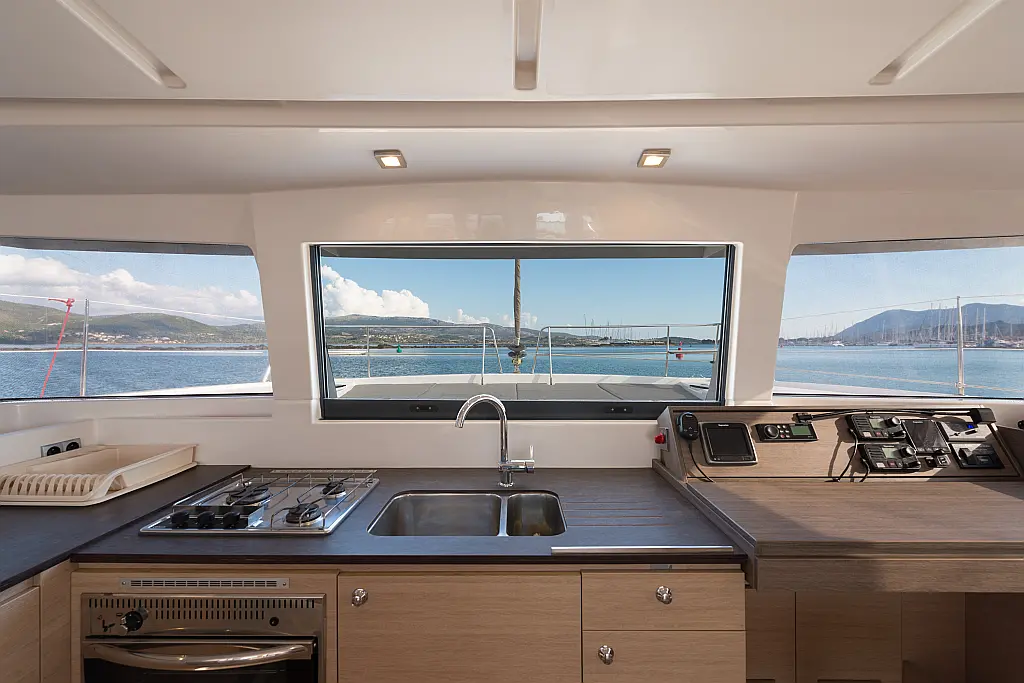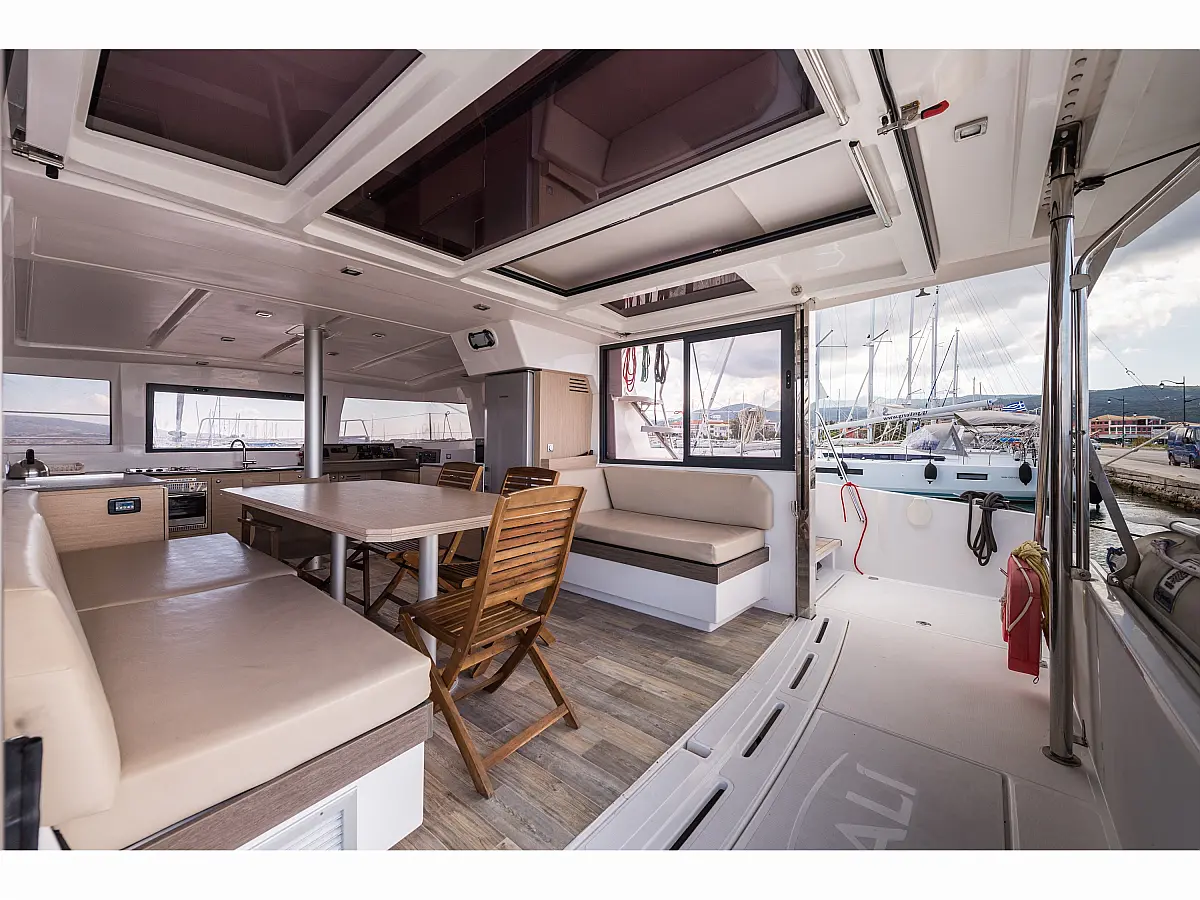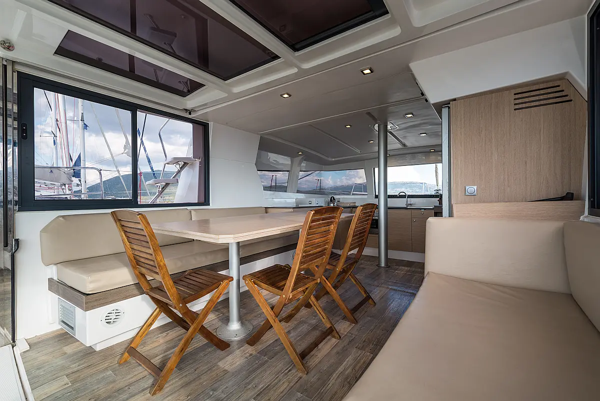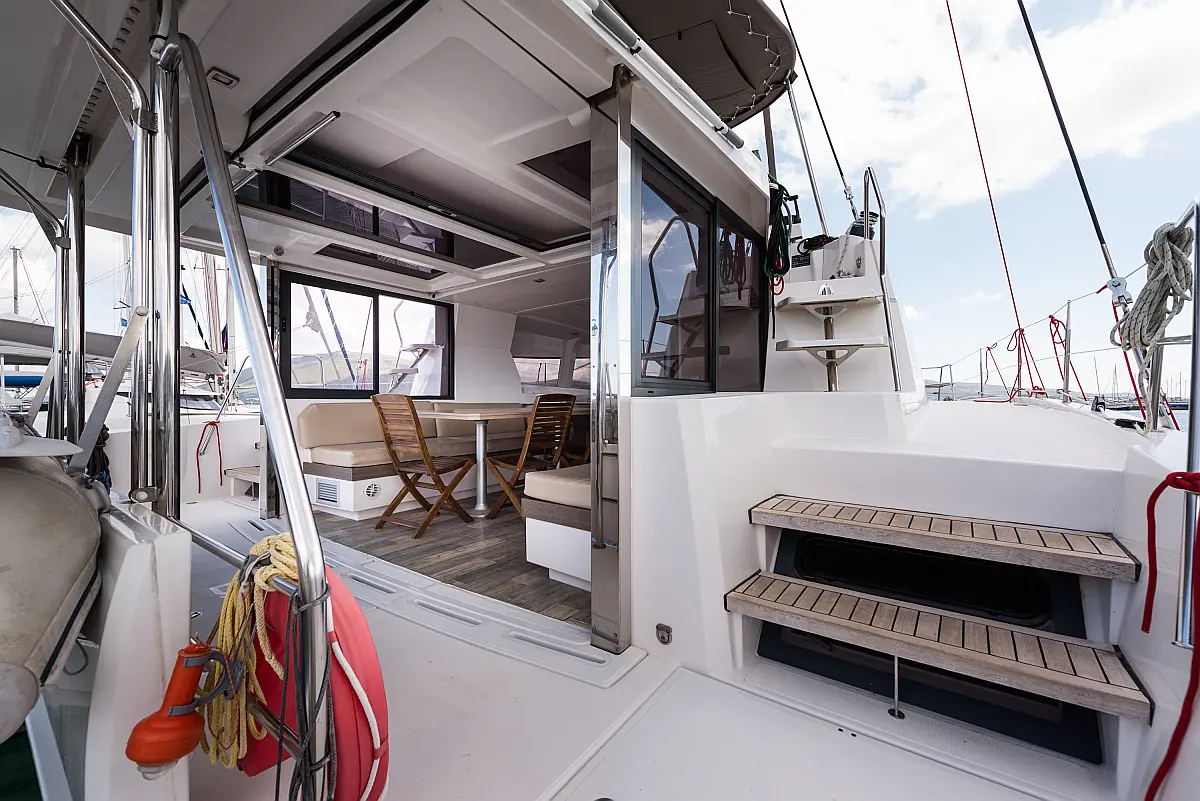 Fäkalientank, Bimini, Beiboot, Elektrische Winch (Segel), Elektrische Toilette, Klimaanlage, Generator, Cockpit-Kissen, Sprayhood, Badeplattform, Solar-Panele