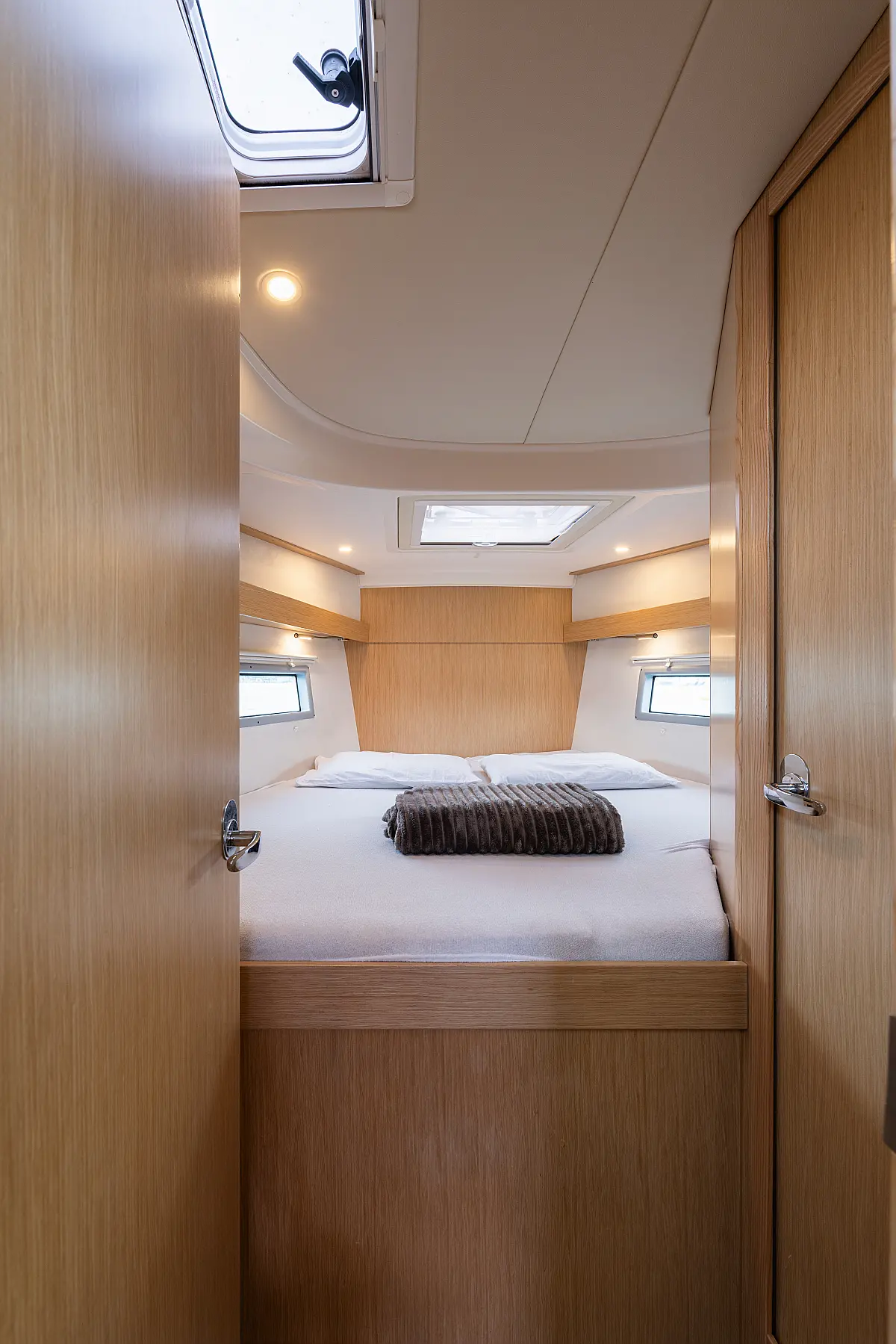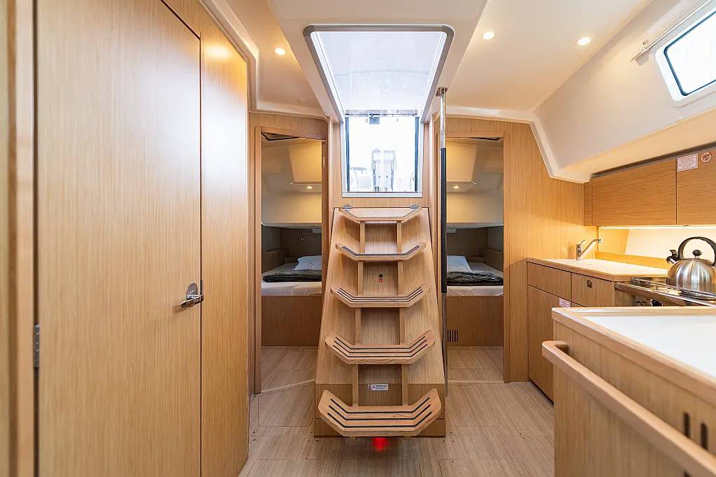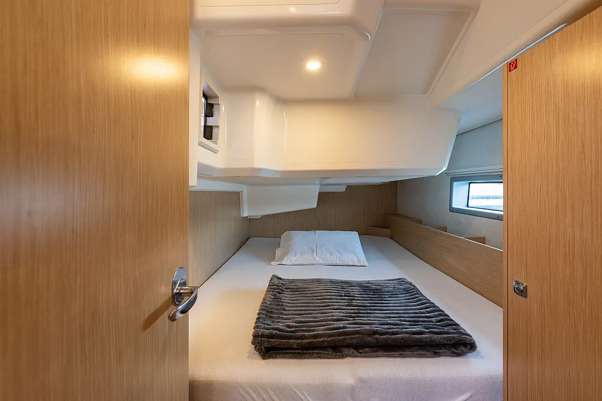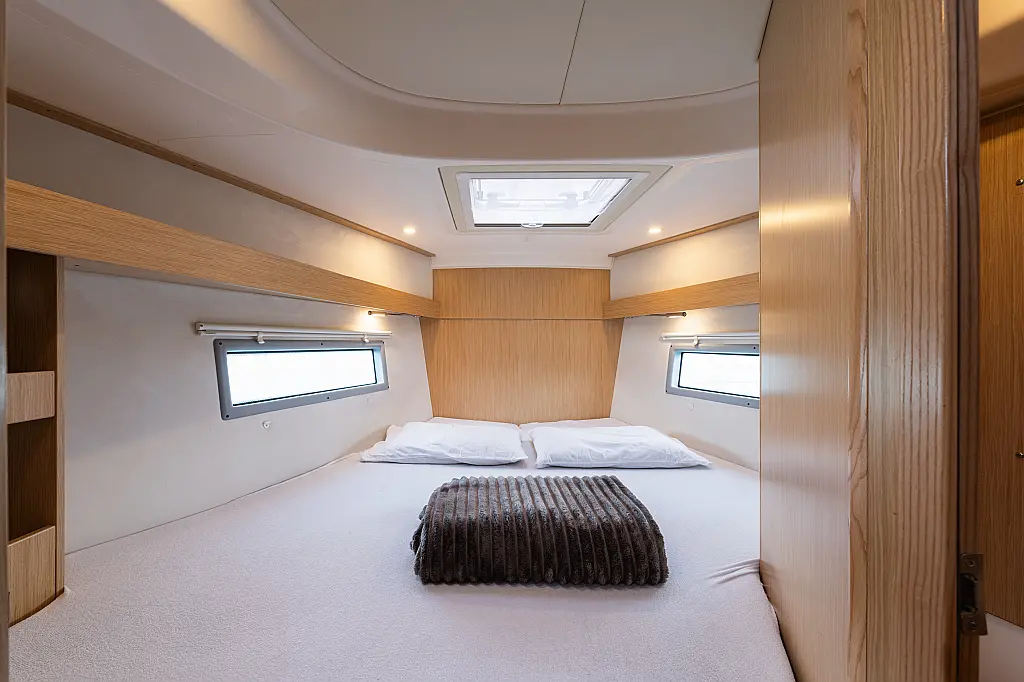 Klimaanlage, Umwandelbarer Tisch, Fäkalientank, Bimini, Sprayhood, Beiboot, Lautsprecher im Cockpit, Elektrische Toilette, Solar-Panele, Cockpit-Kissen, Teak Cockpit