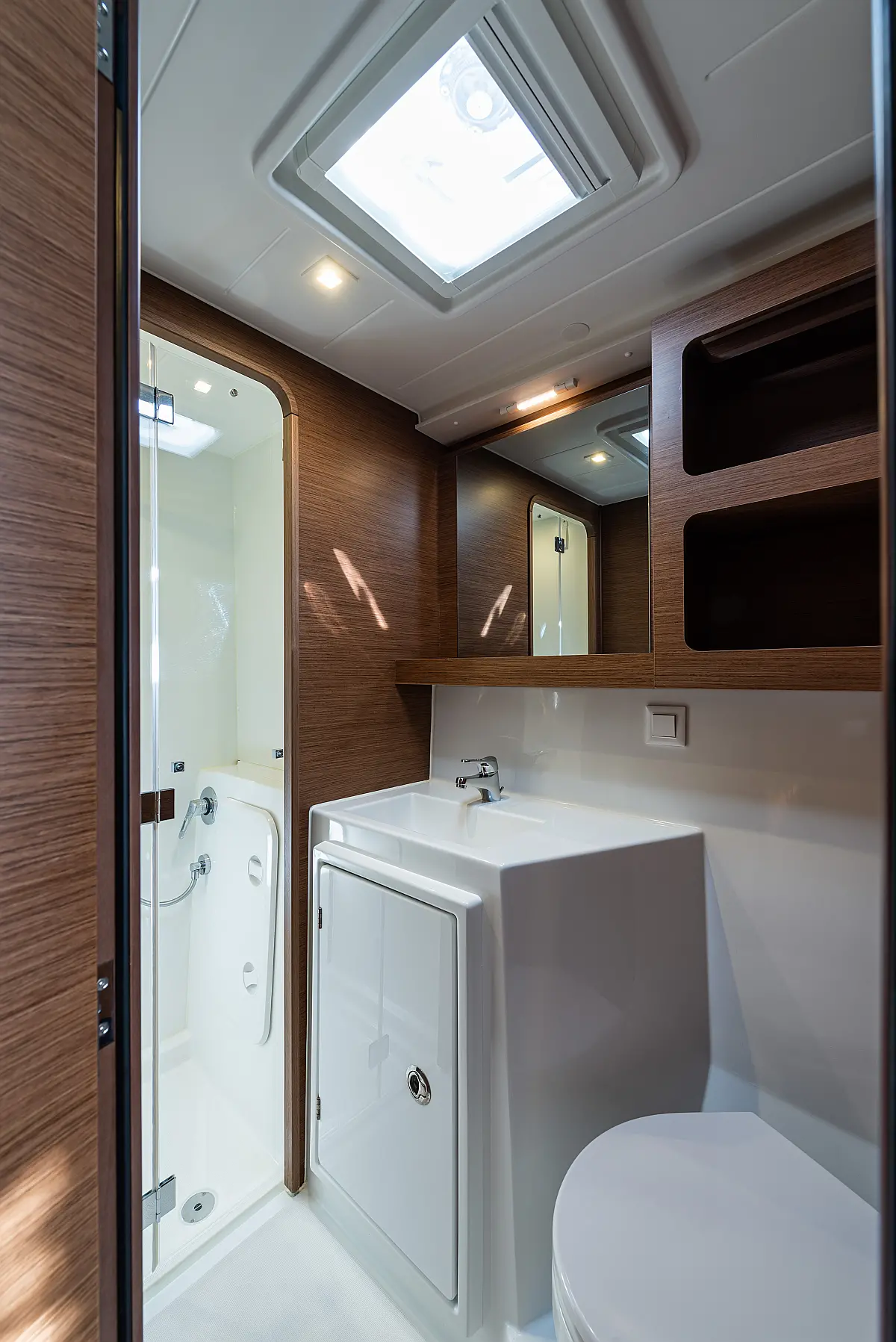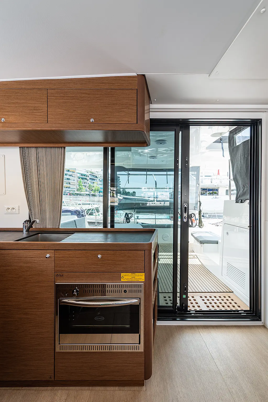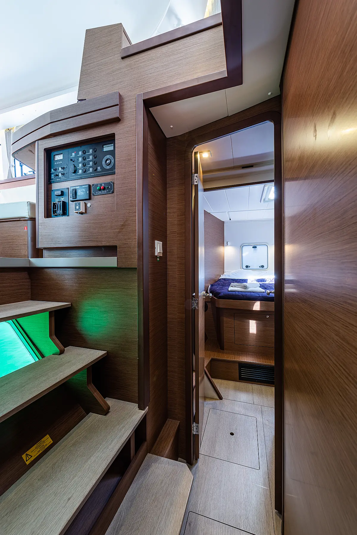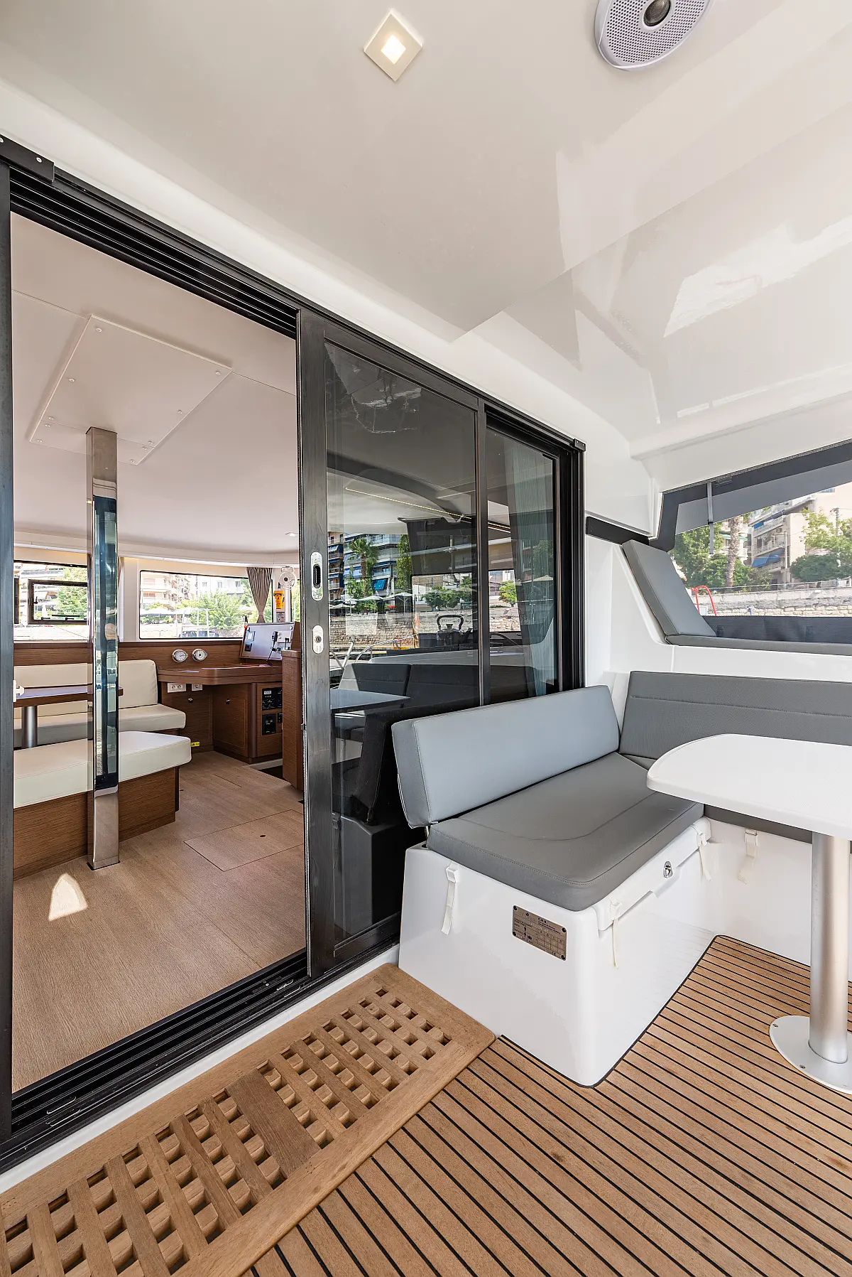 Fäkalientank, Lautsprecher im Cockpit, Elektrische Winch (Segel), Elektrische Toilette, Klimaanlage, Wassermacher, Generator, Cockpit-Kissen, Beiboot, Sprayhood, Badeplattform, Teak Cockpit, Bimini, Solar-Panele