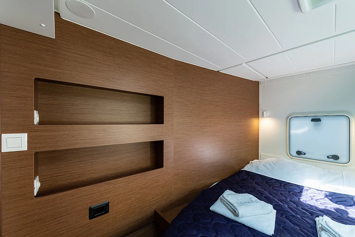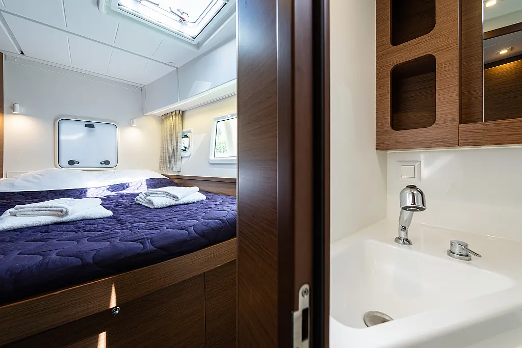 6 (4 double-bed cabins + 2 bow cabins)