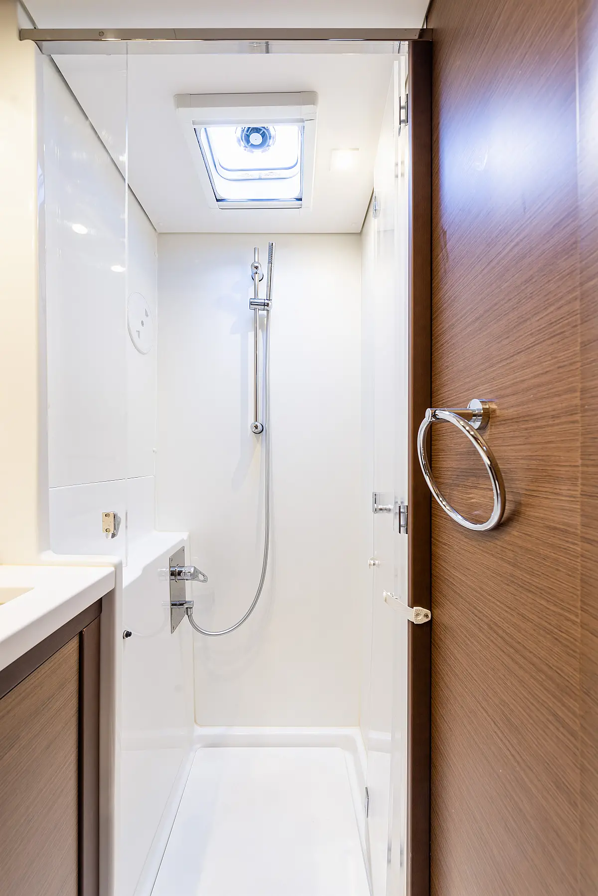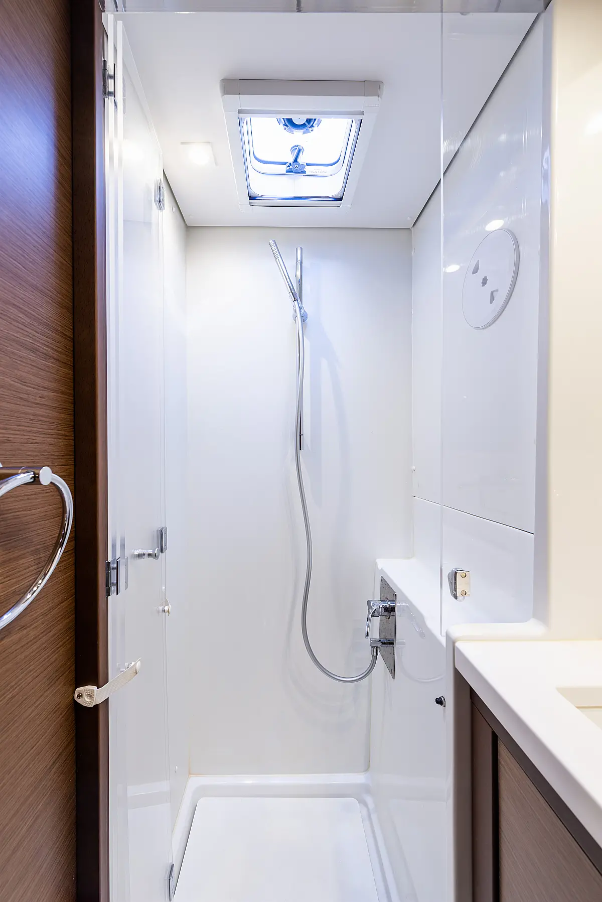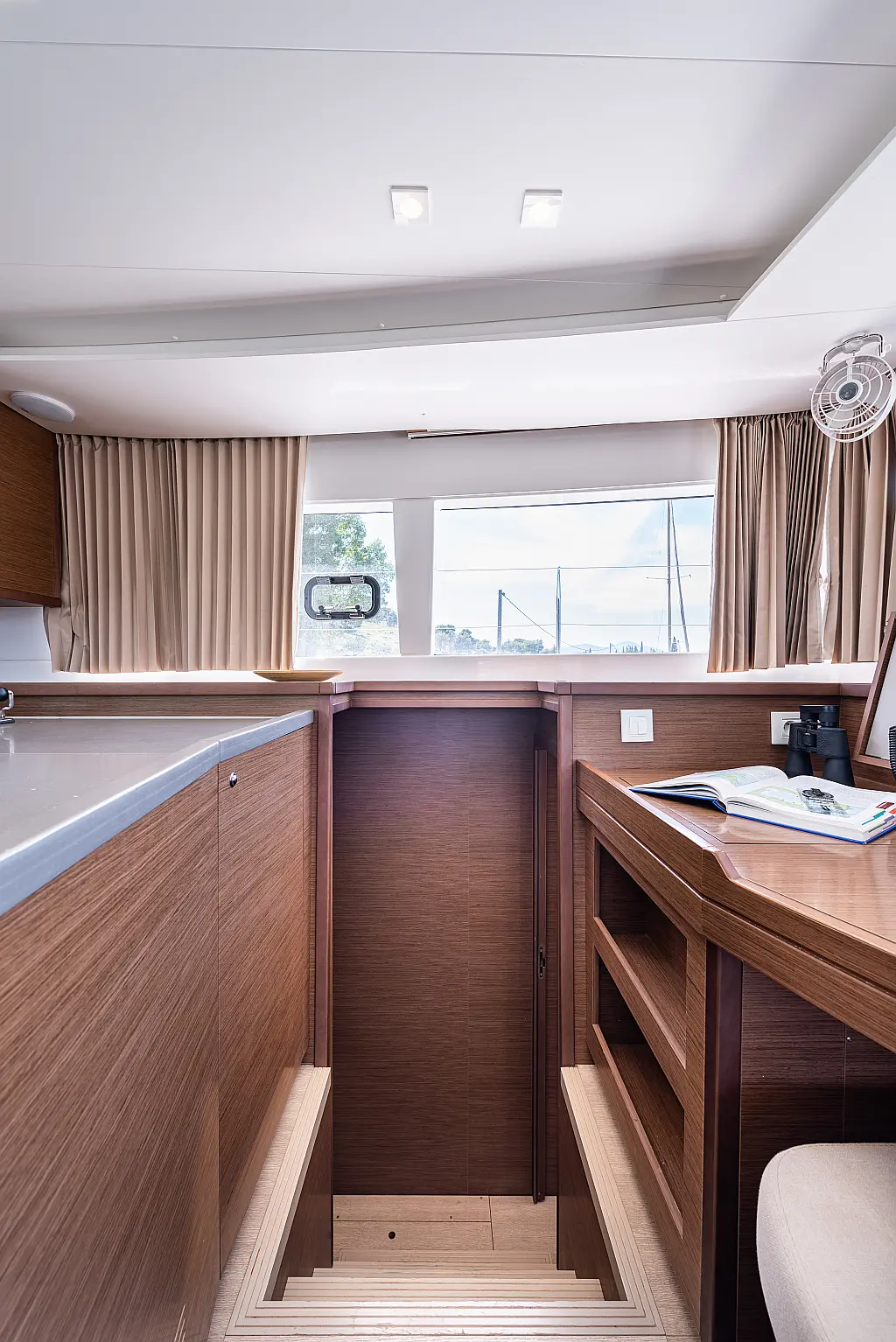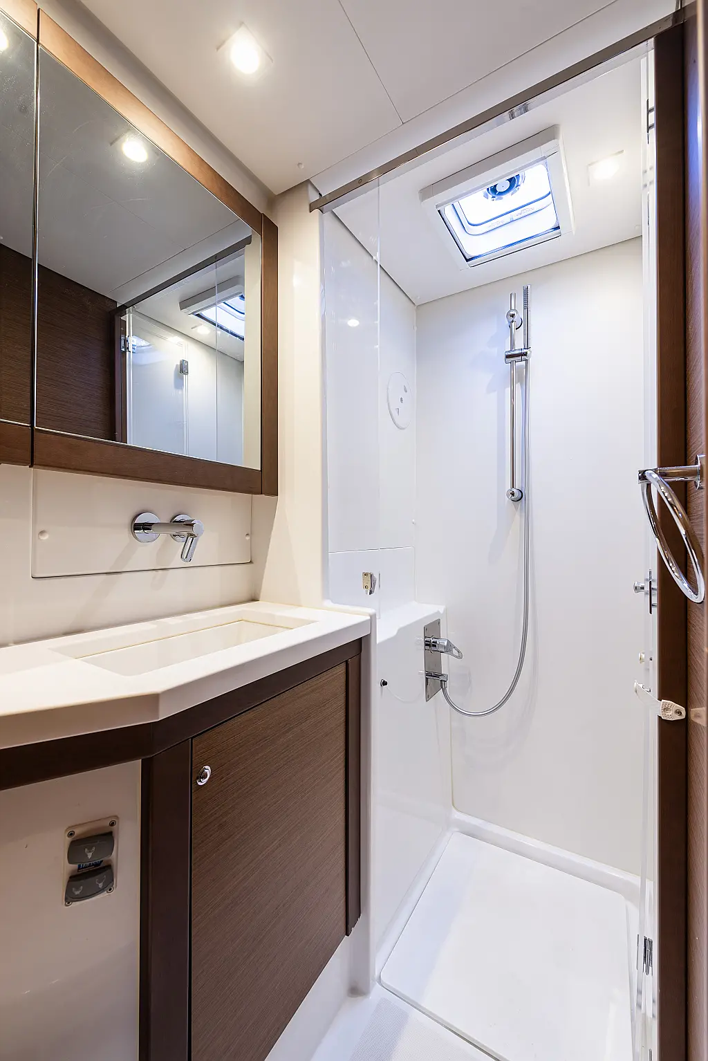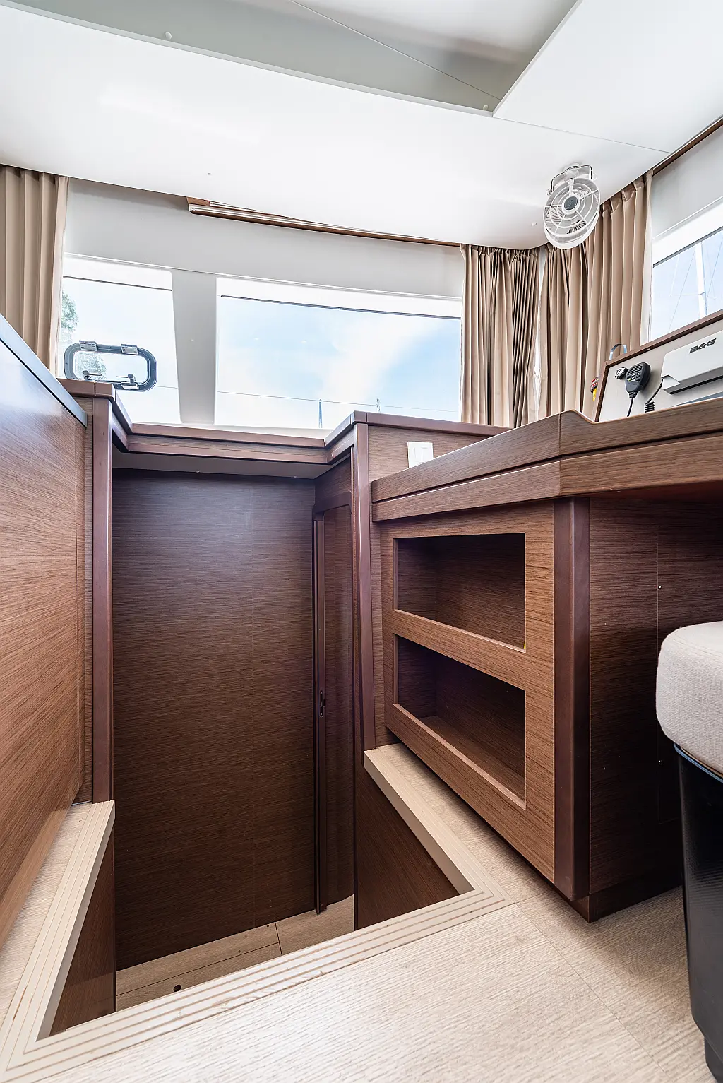 Fäkalientank, Bimini, Beiboot, Lautsprecher im Cockpit, Elektrische Winch (Segel), Elektrische Toilette, Klimaanlage, Wassermacher, Generator, Cockpit-Kissen, Sprayhood, Badeplattform, Solar-Panele