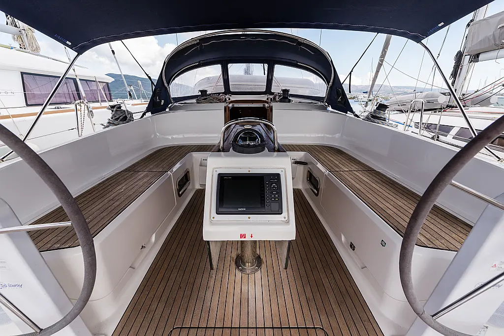 Air condition, Holding tank, Bimini, Sprayhood, Dinghy, Cockpit speakers, Electric winches, Electric toilet, Solar Panels, Teak Cockpit