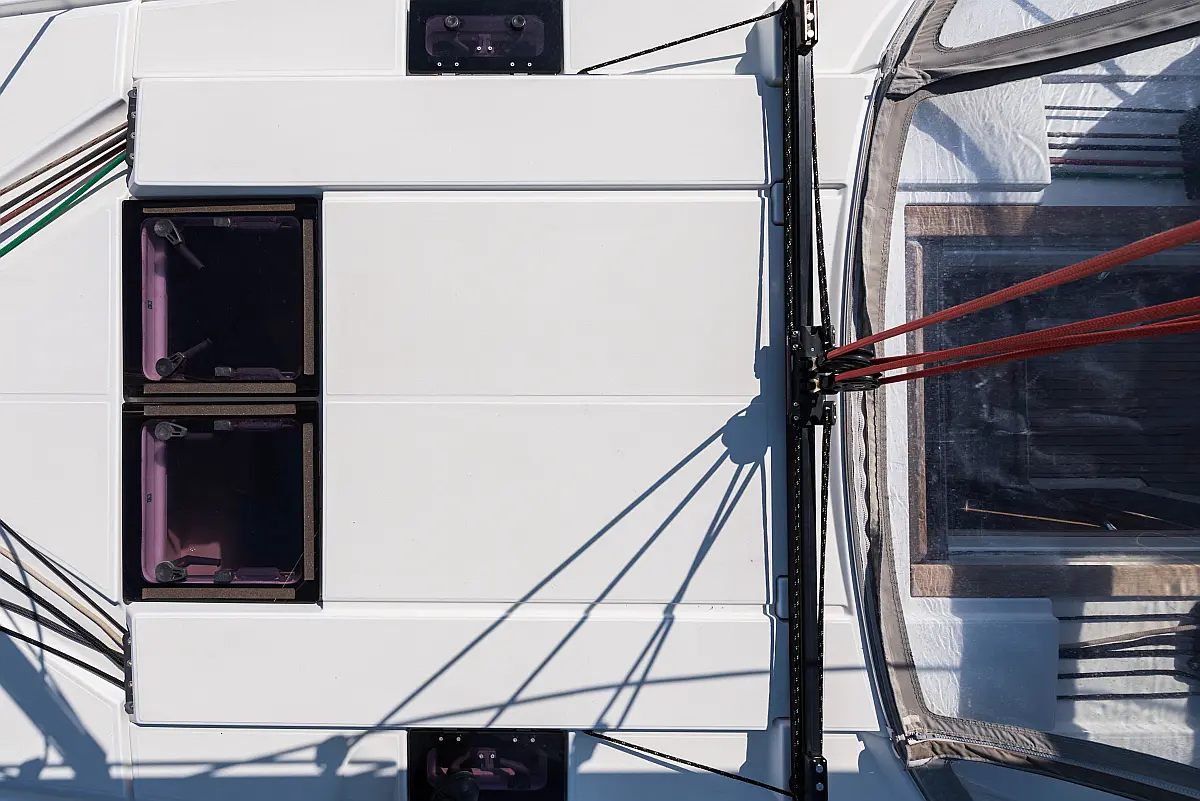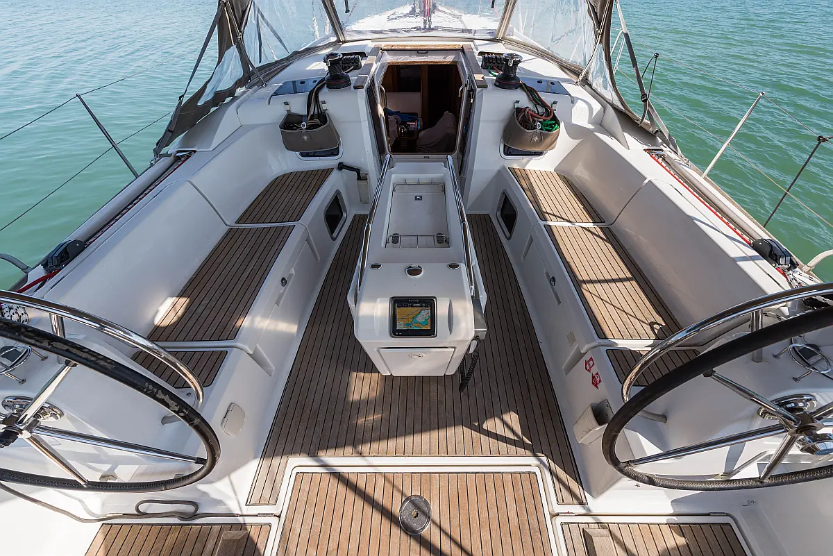 Holding tank, Sprayhood, Dinghy, Cockpit speakers, Electric toilet, Solar Panels, Cockpit cushions, Teak Cockpit