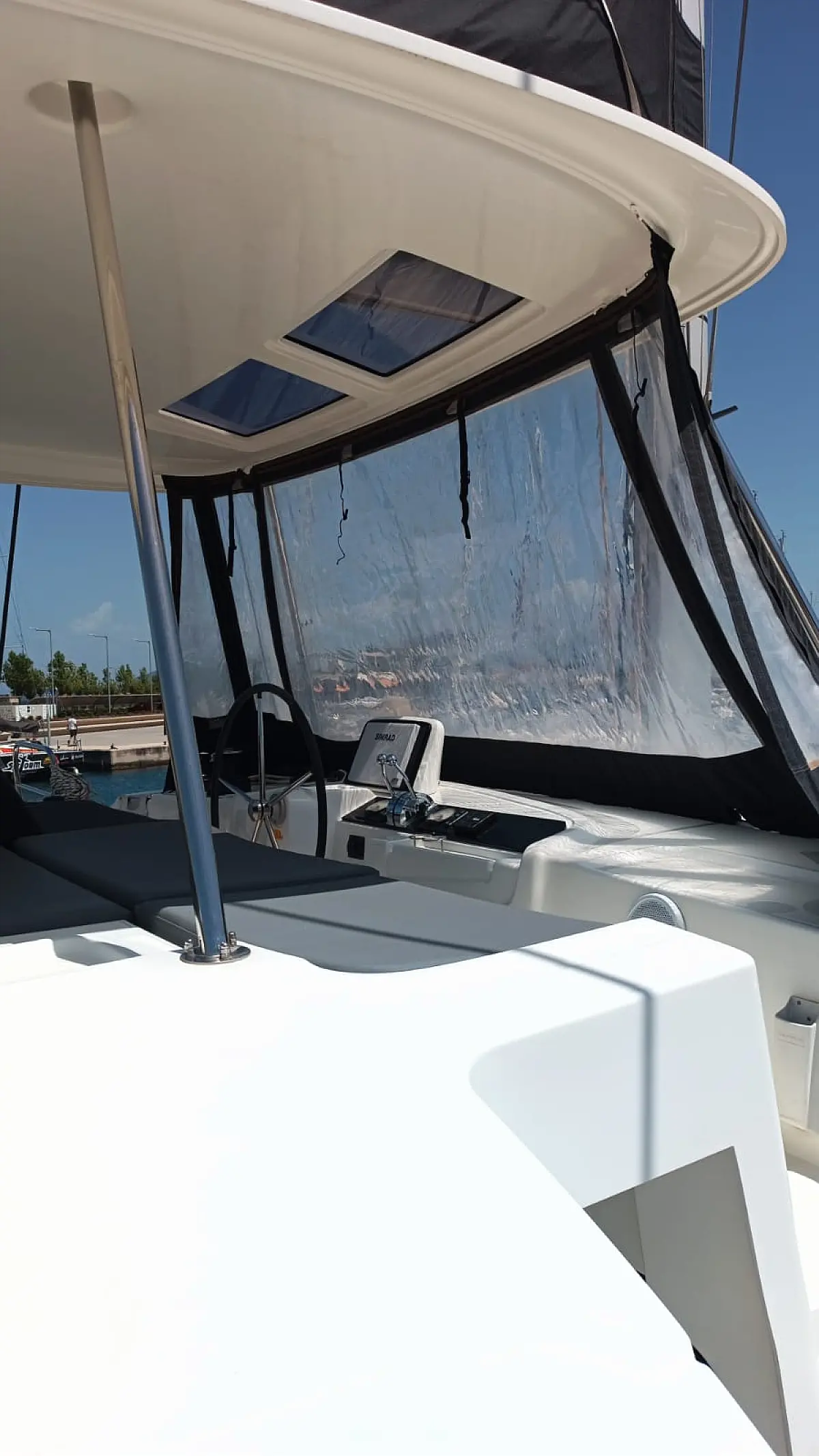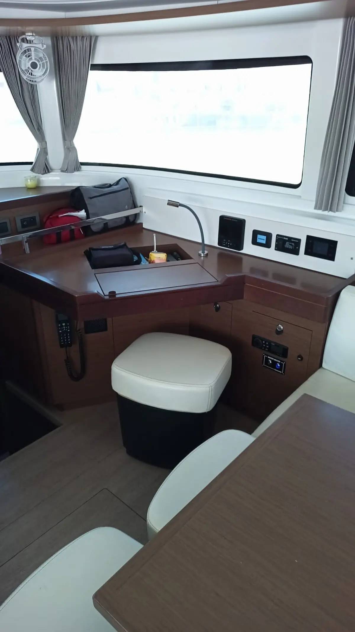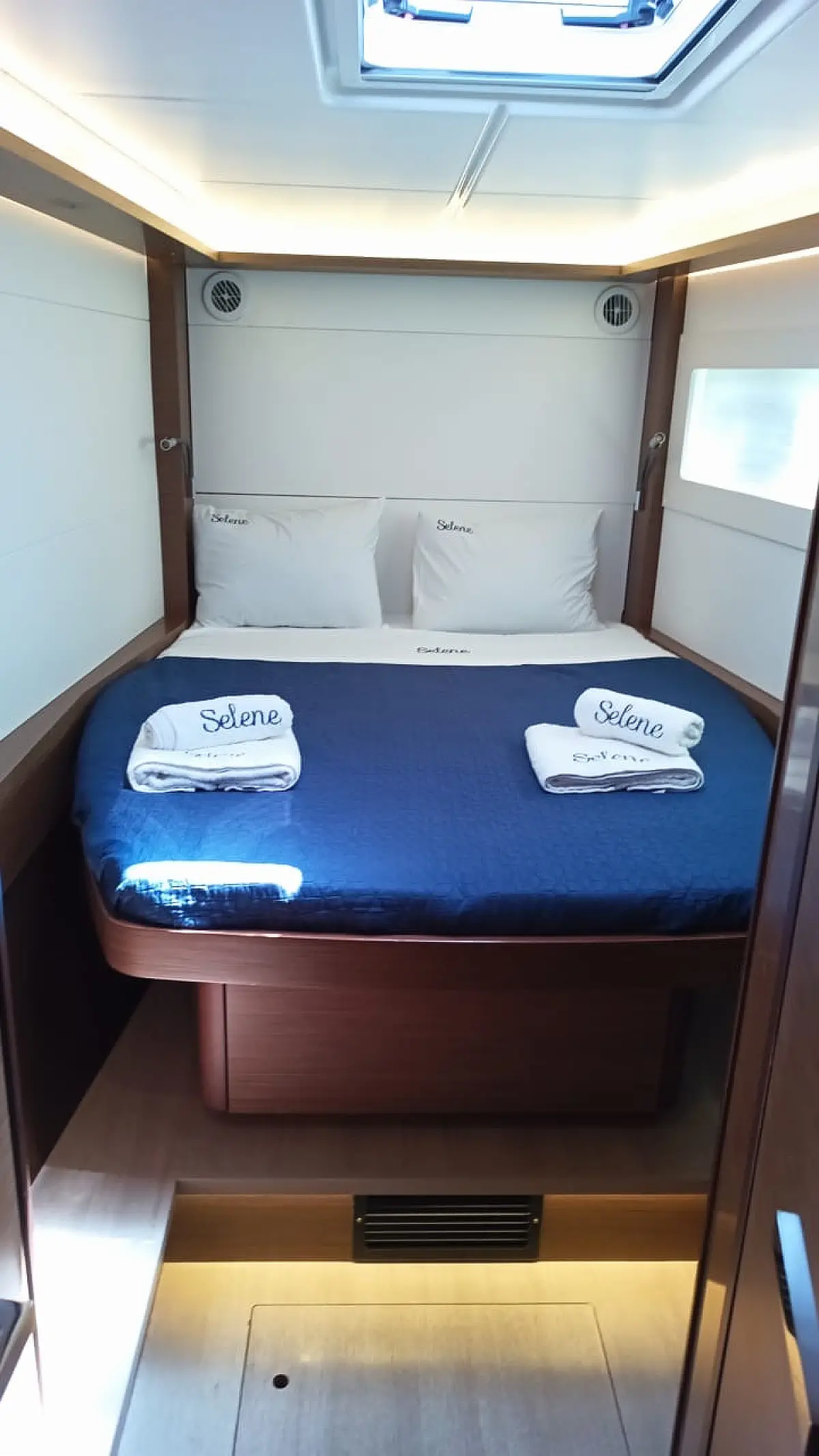 Air condition, Cockpit cushions, Electric winches, Inverter, Refrigerator, Coffee maker, Solar Panels, Holding tank, Cockpit speakers