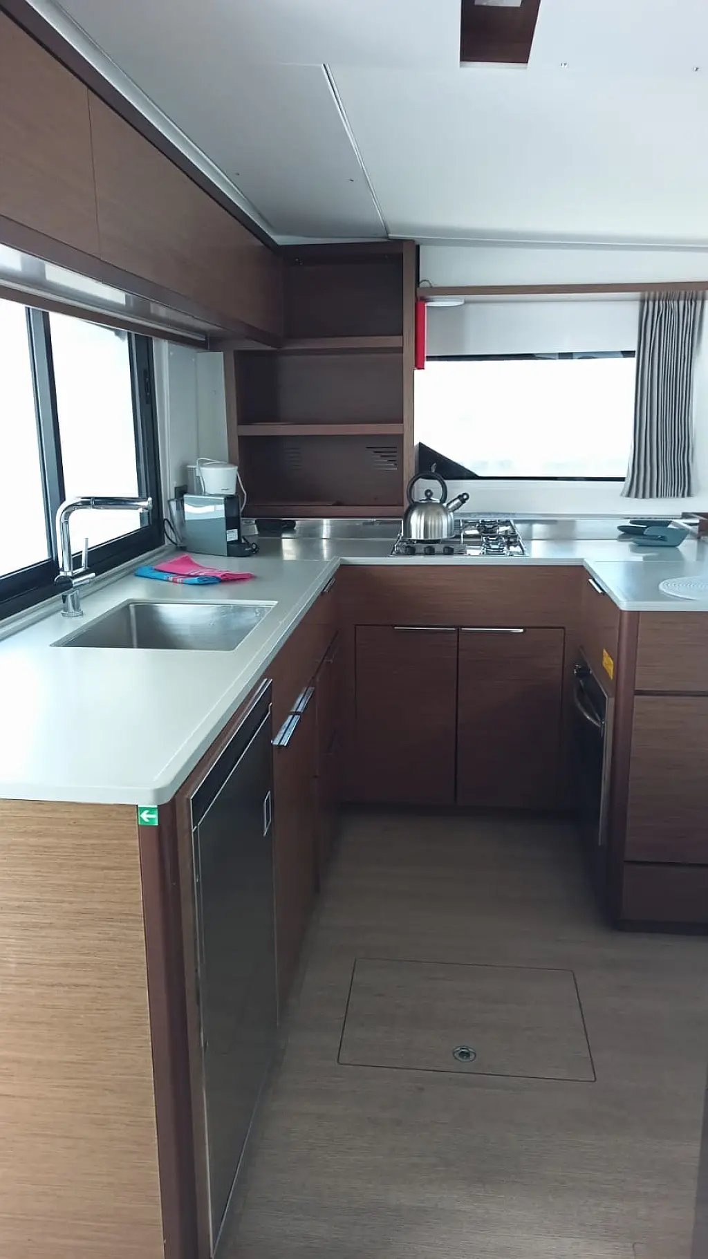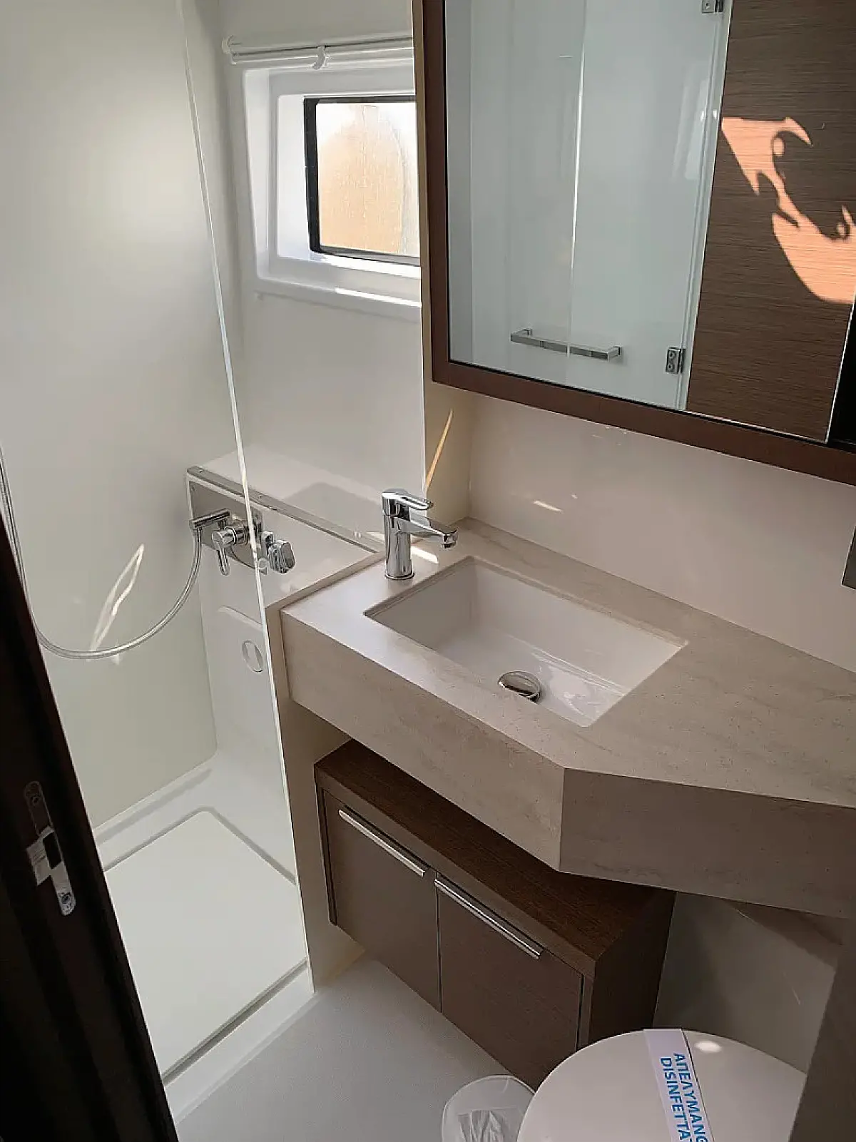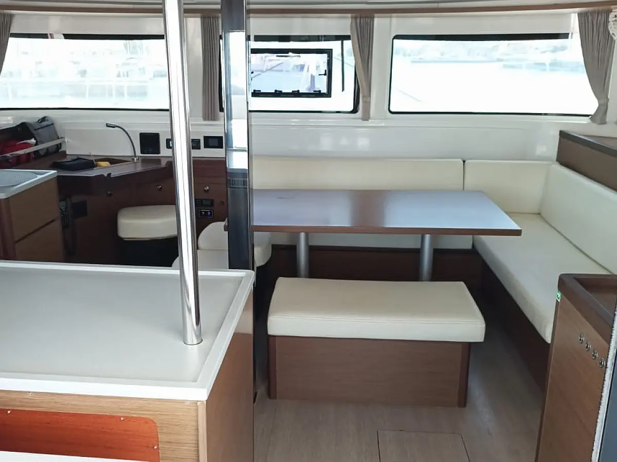 Air condition, Cockpit cushions, Electric winches, Inverter, Refrigerator, Coffee maker, Solar Panels, Holding tank, Cockpit speakers