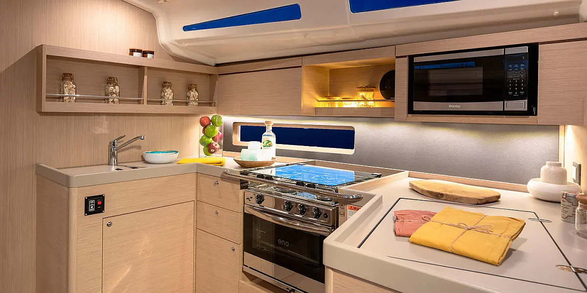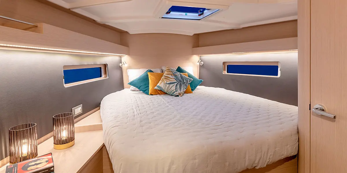Bimini, Cockpit speakers, Cockpit cushions, Sprayhood, Refrigerator, Dinghy