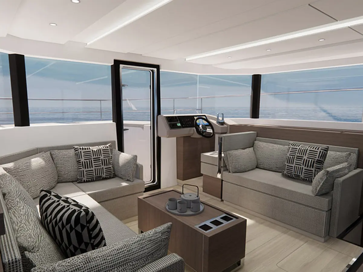 Bimini, Barbecue grill in cockpit, Cockpit speakers, Solar Panels