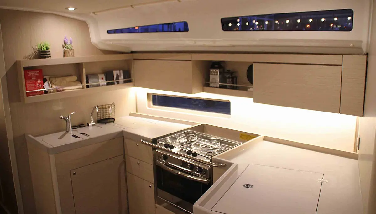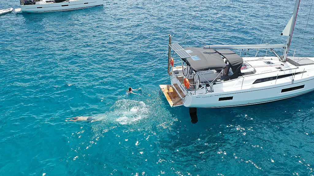 Bimini, Dinghy, Refrigerator, Cockpit speakers, Electric toilet, Solar Panels, Inverter, Teak Cockpit, Cockpit cushions, Outboard engine