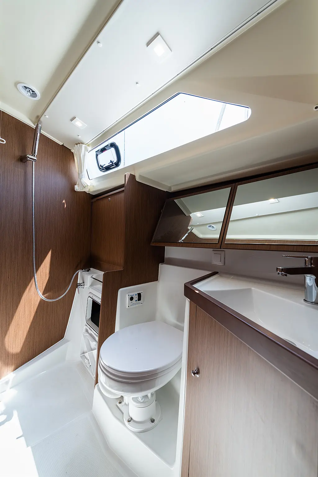 Holding tank, Sprayhood, Dinghy, Cockpit speakers, Electric toilet, Solar Panels, Cockpit cushions, Teak Cockpit