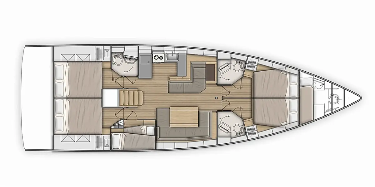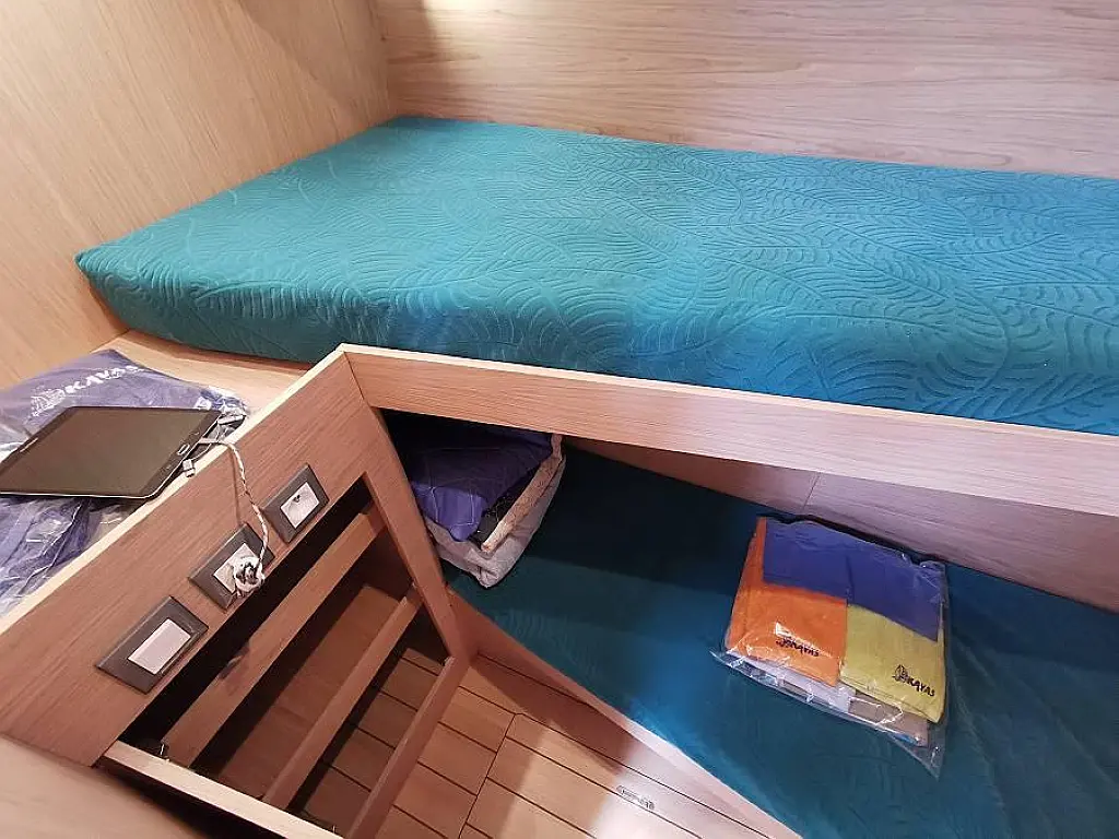 Bimini, Cockpit cushions, Coffee maker, Dinghy, Refrigerator, Sprayhood, Solar Panels, Generator, Air condition