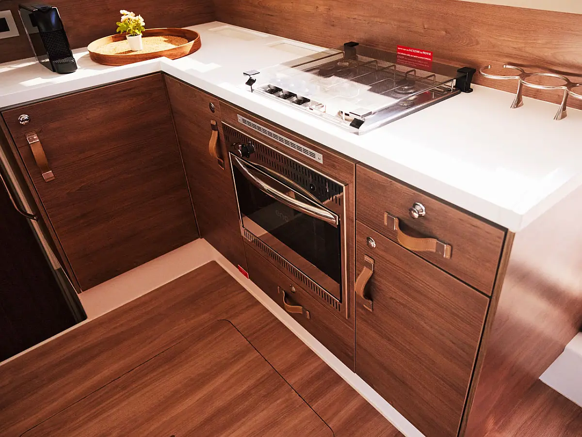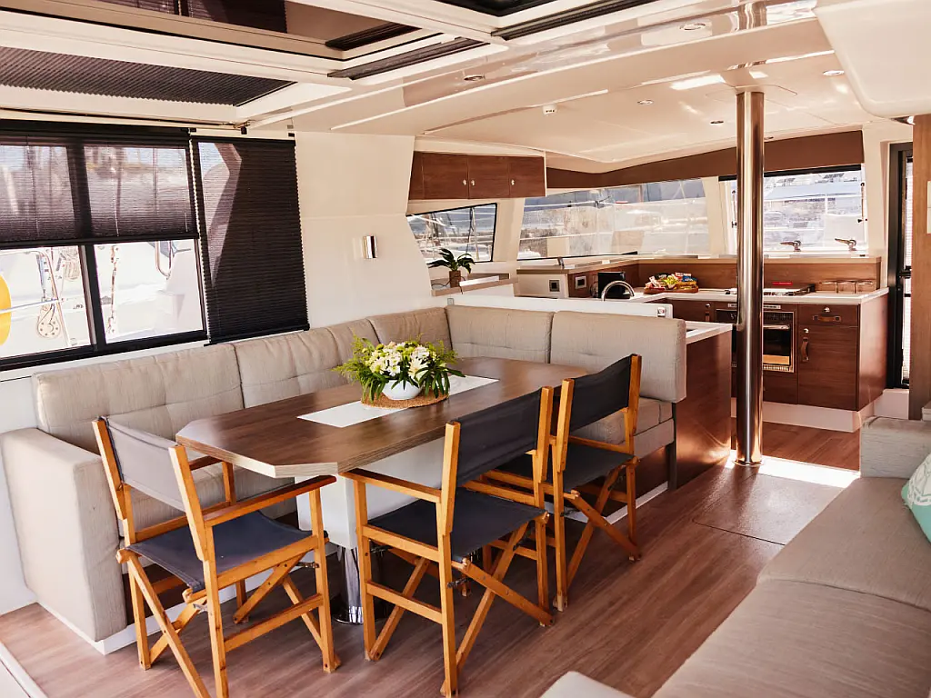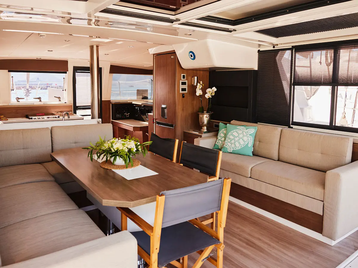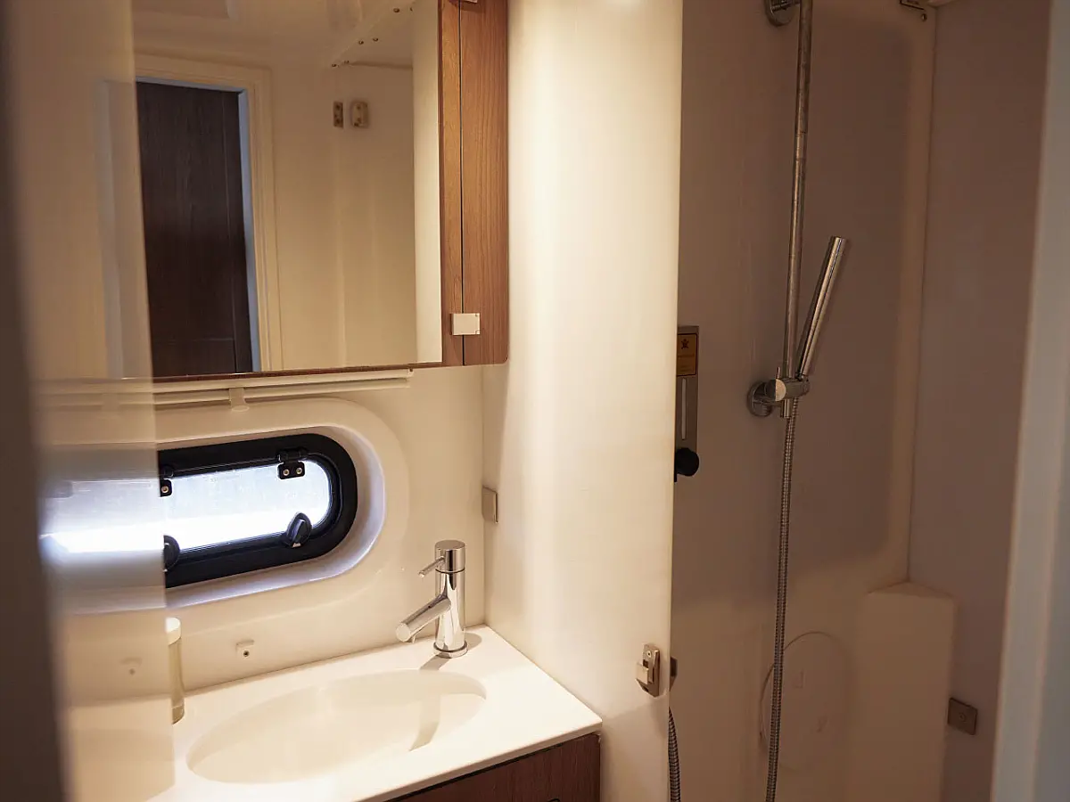 Kylskåp, cockpitkuddar, Soltak, Gummibåt, solpaneler, Generator, Luftkonditionering, Inverter, vatten maker