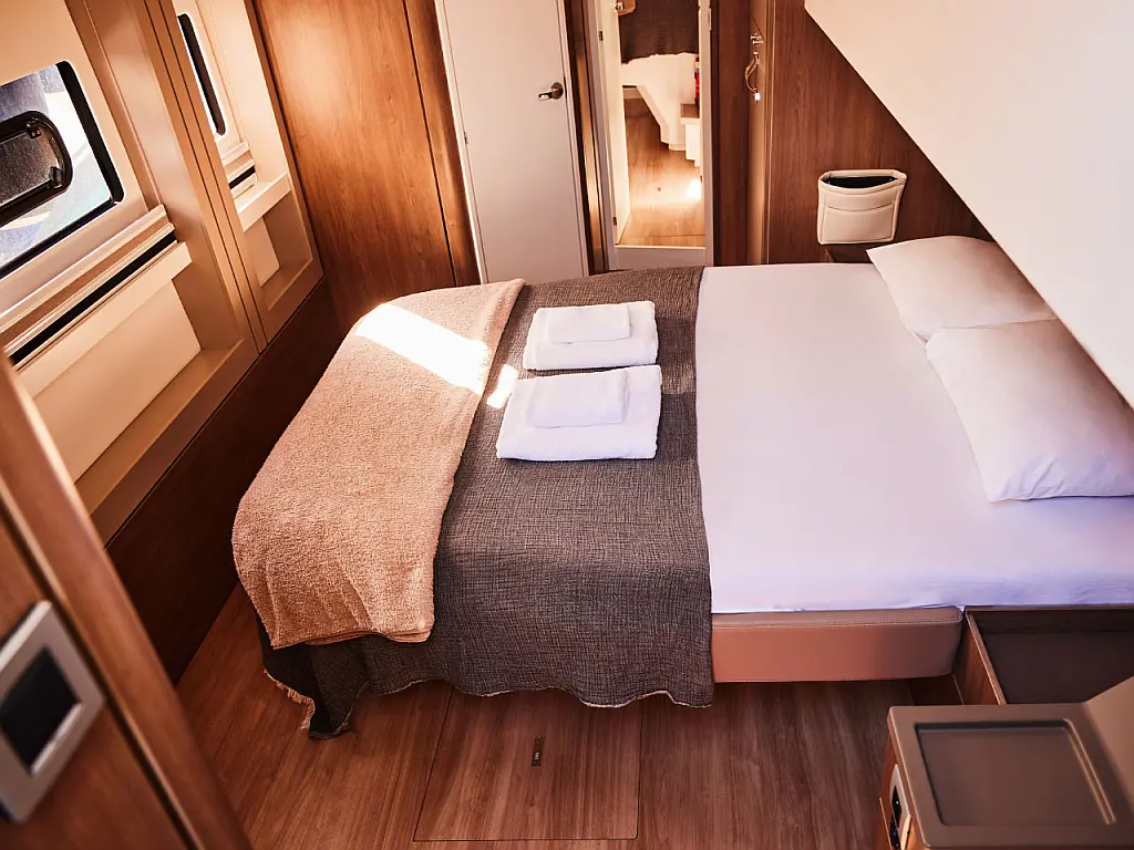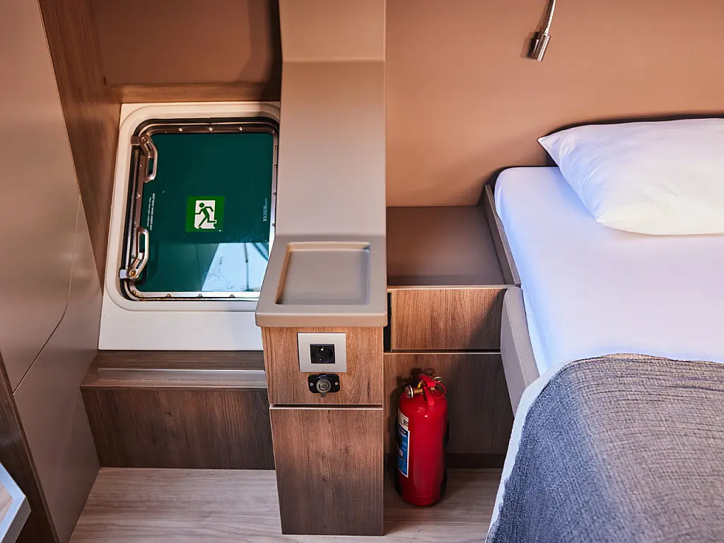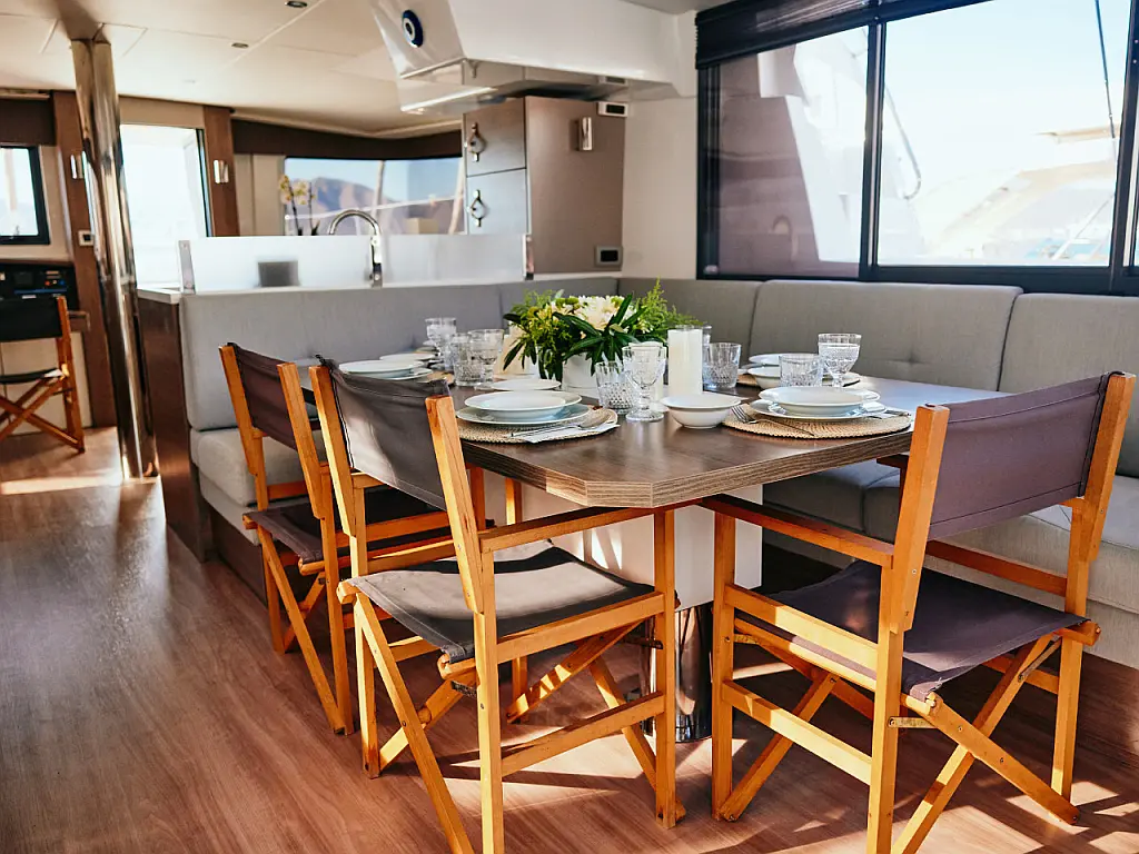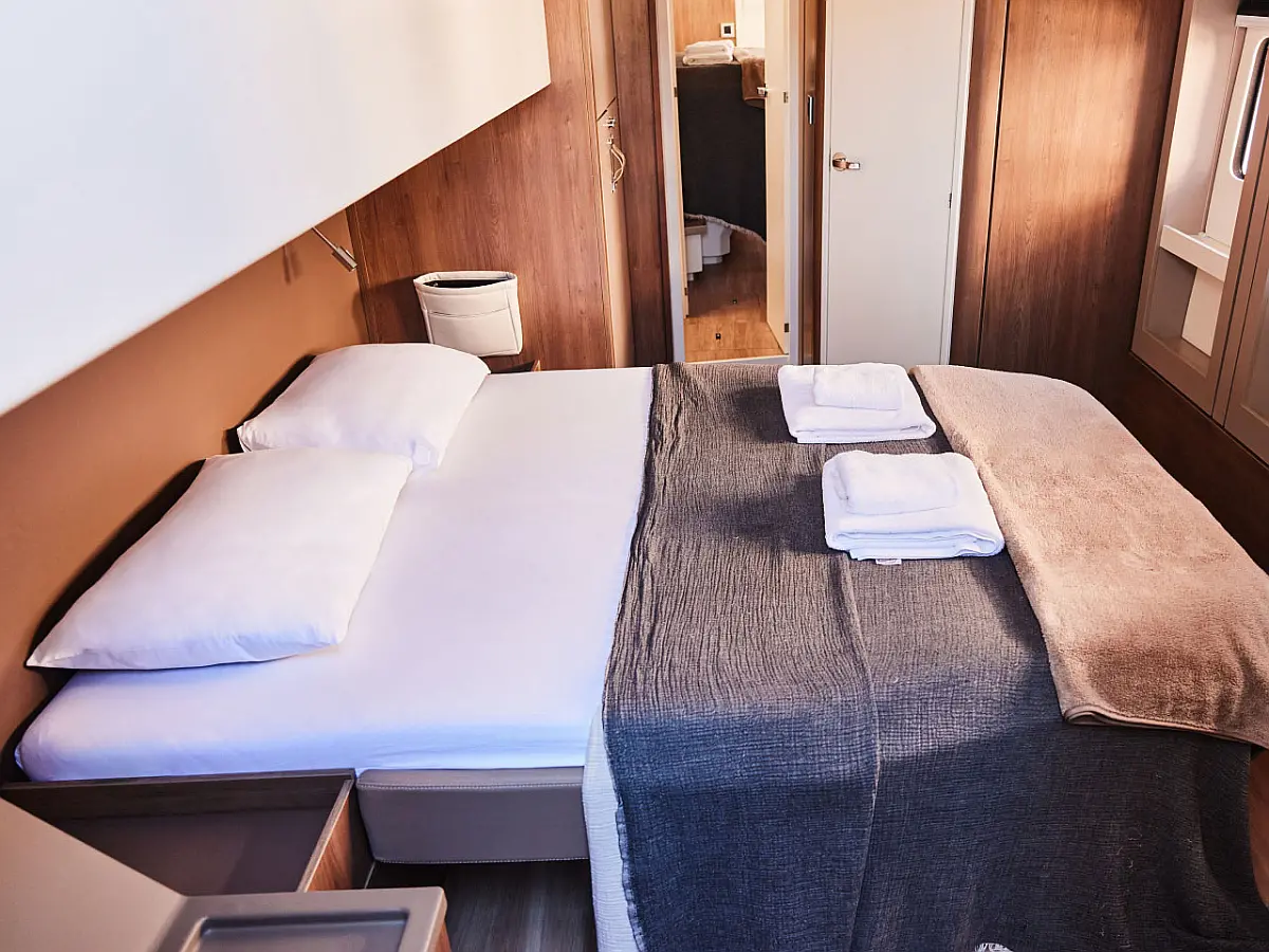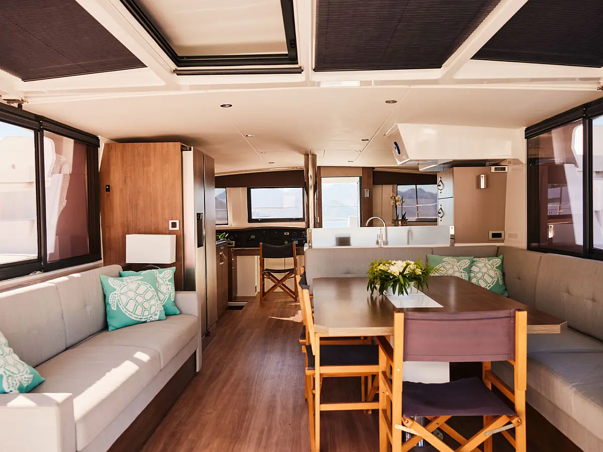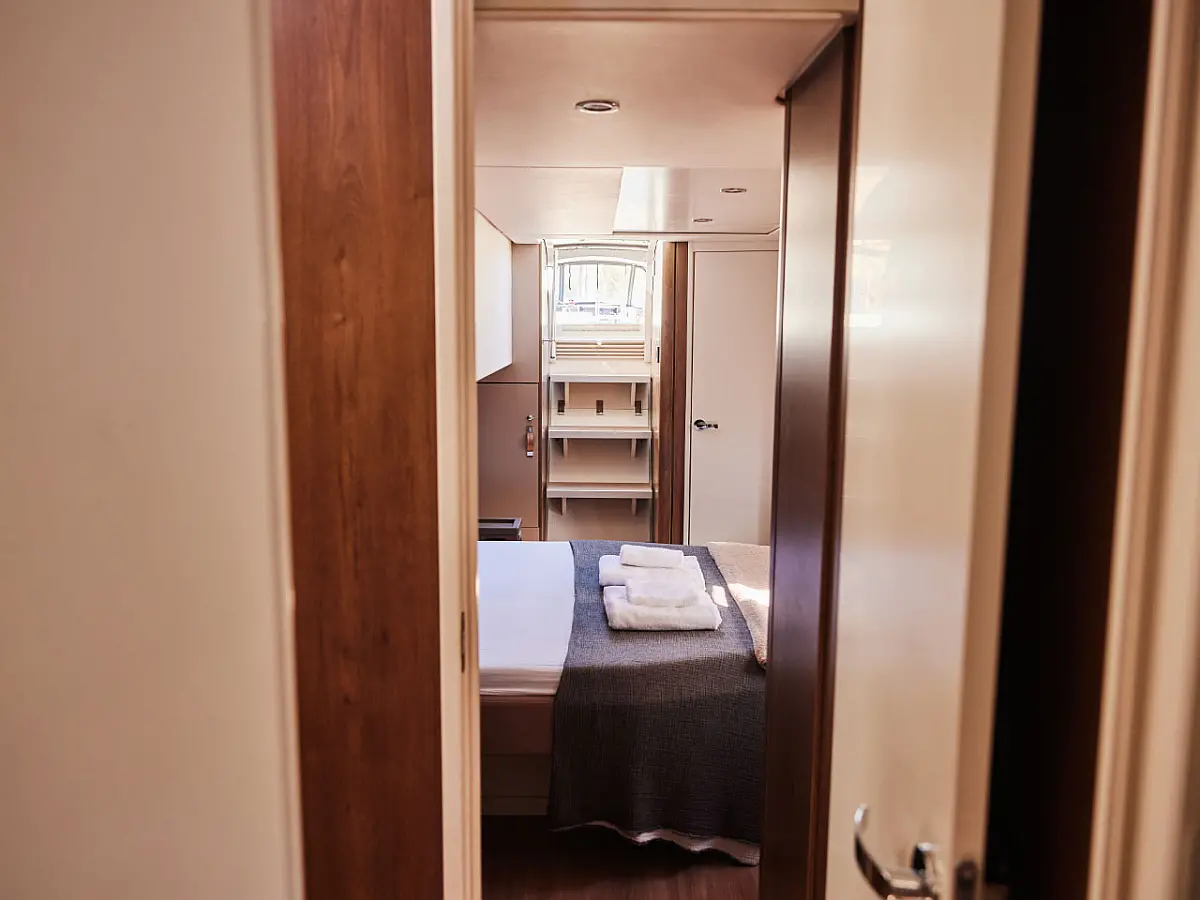 Kylskåp, cockpitkuddar, Soltak, Gummibåt, Hydraulisk landgång, solpaneler, Generator, Luftkonditionering, Inverter, vatten maker