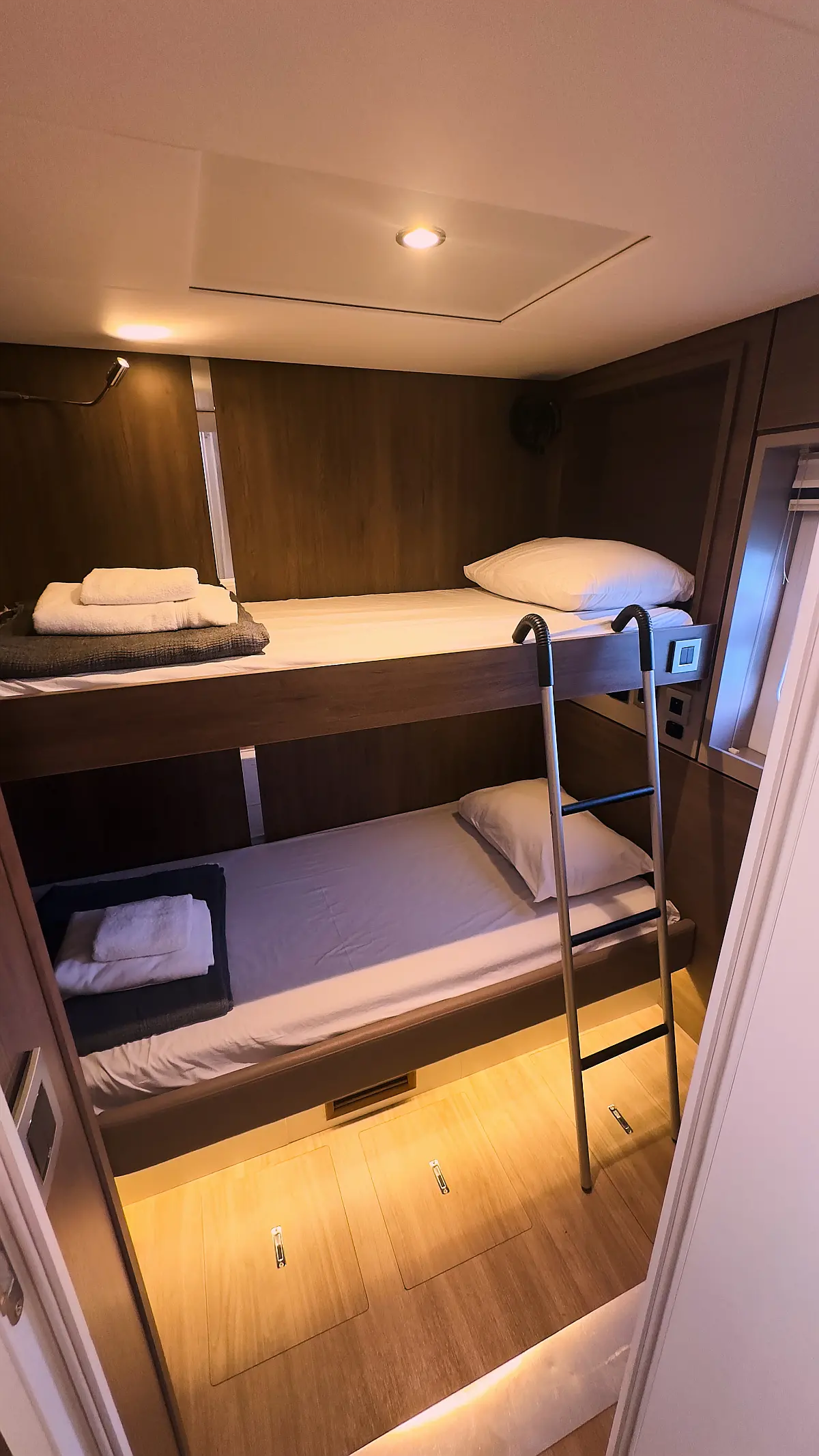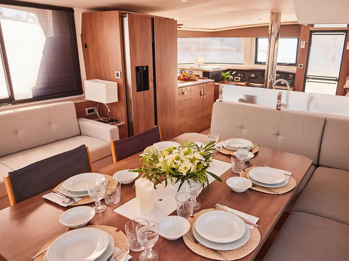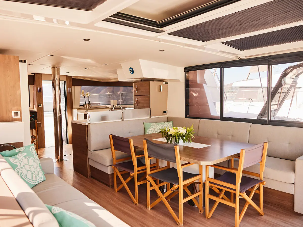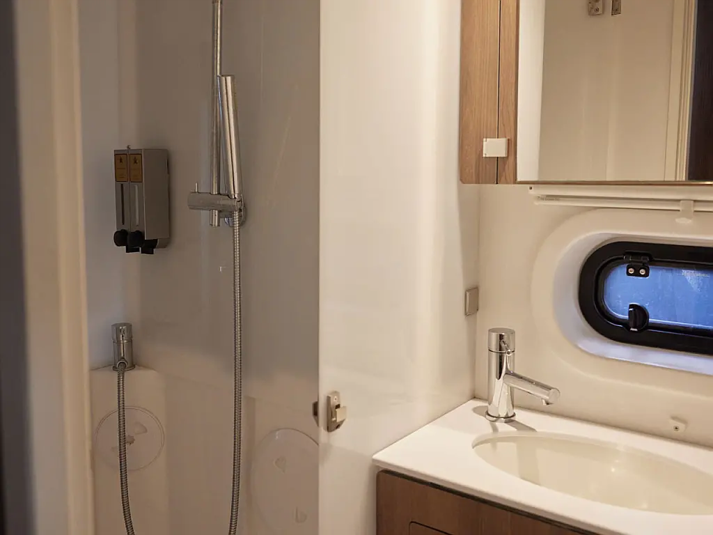 Kylskåp, cockpitkuddar, Soltak, Gummibåt, Hydraulisk landgång, solpaneler, Generator, Luftkonditionering, Inverter, vatten maker