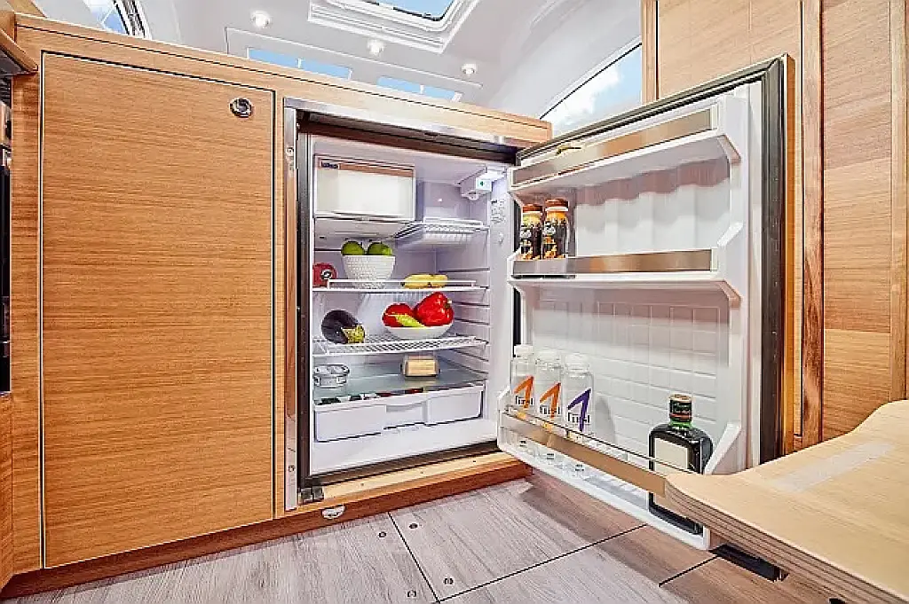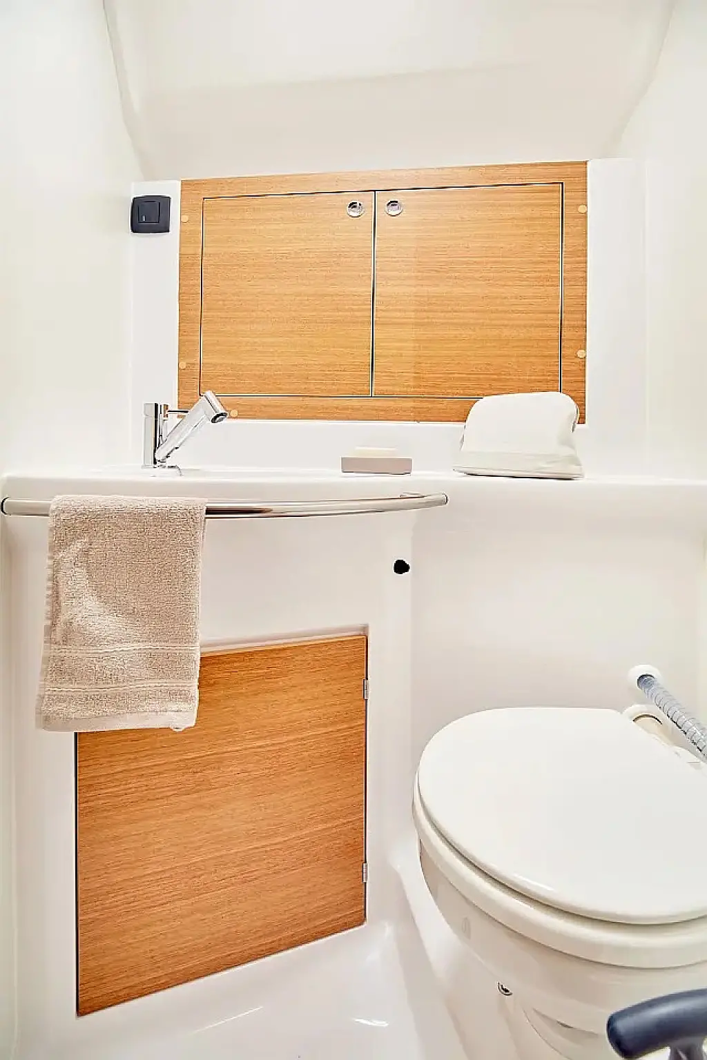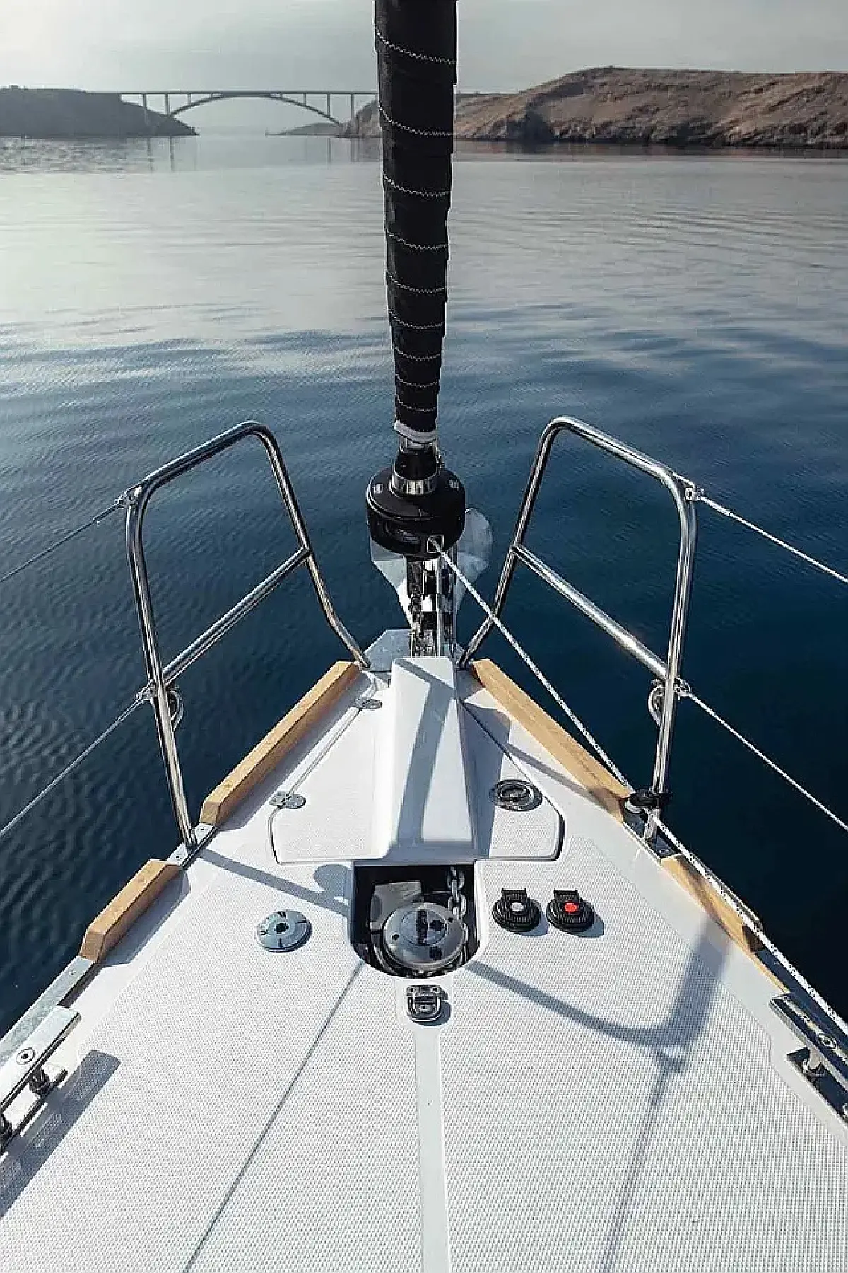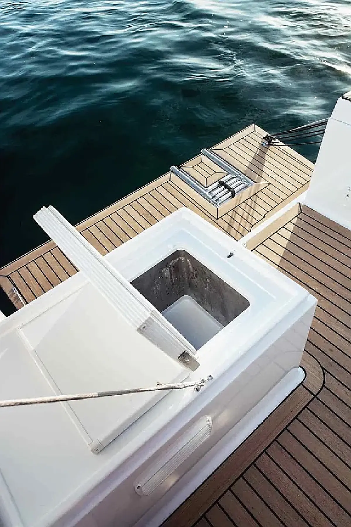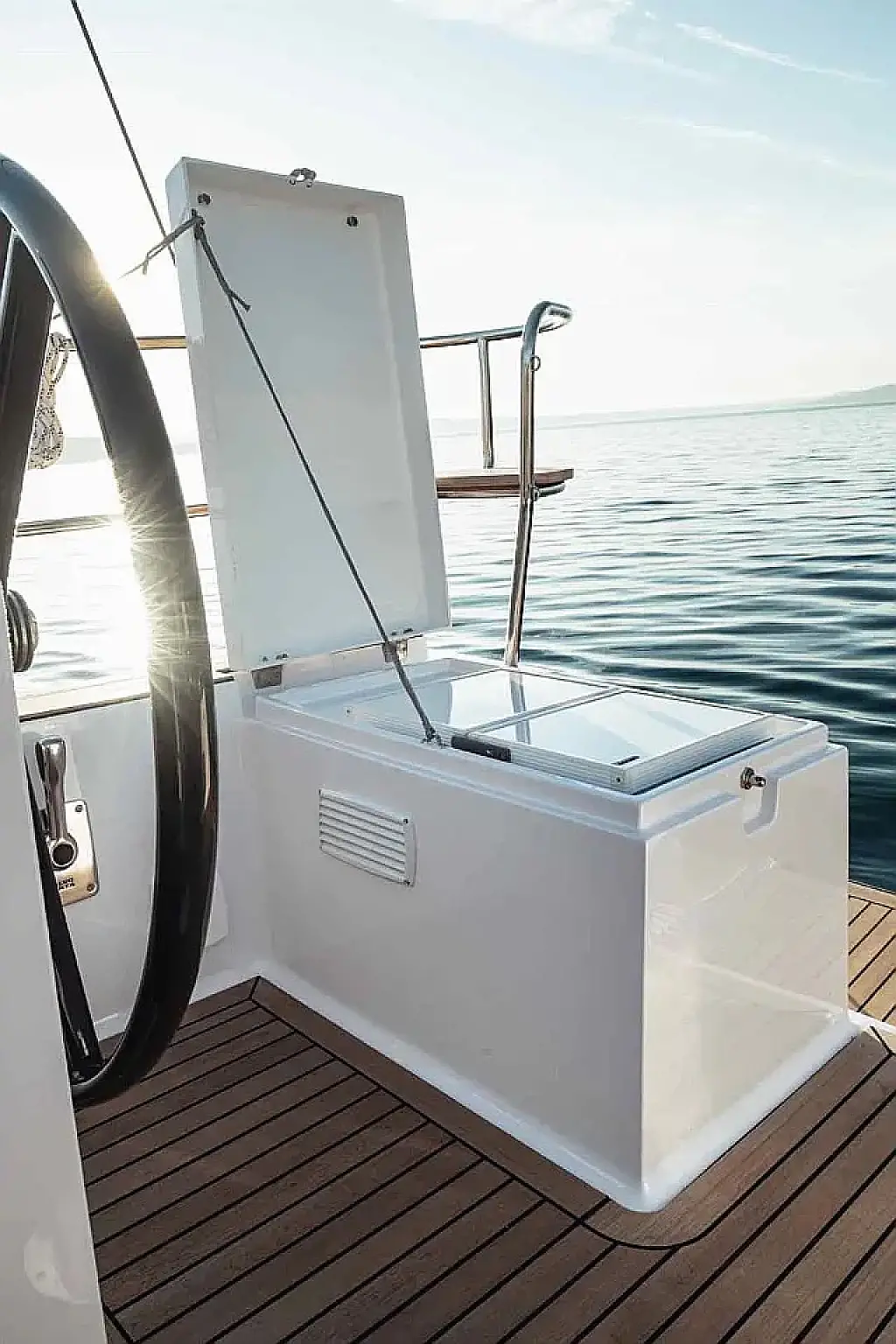 Simplattform, Soltak, cockpitkuddar, Sittbrunnshögtalare, Gummibåt, Kylskåp, Elektrisk toalett, Värmare, Septiktank, Inverter, Sprayhood, teak cockpit, Wi-Fi och Internet