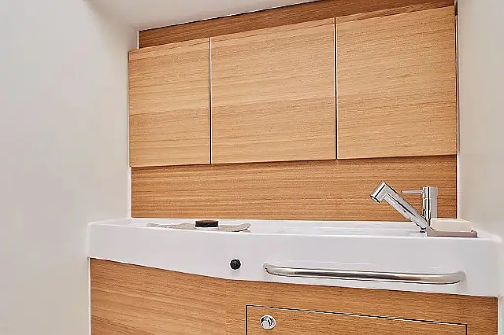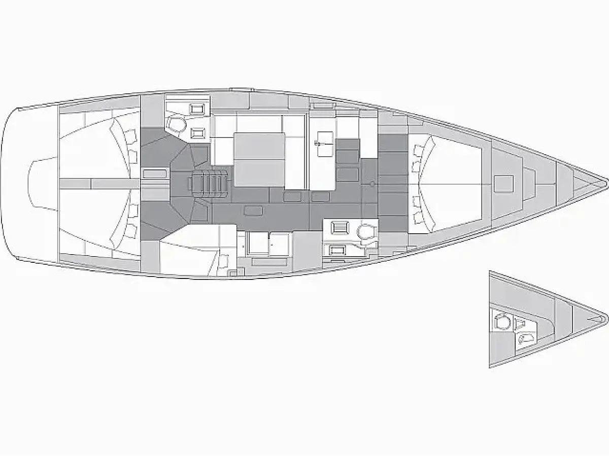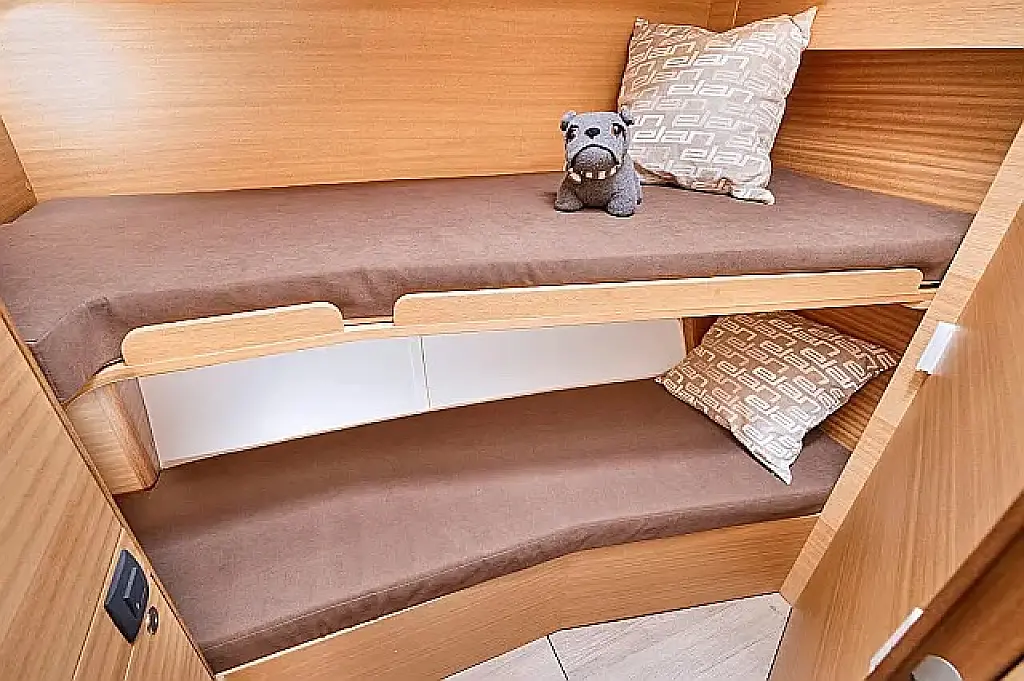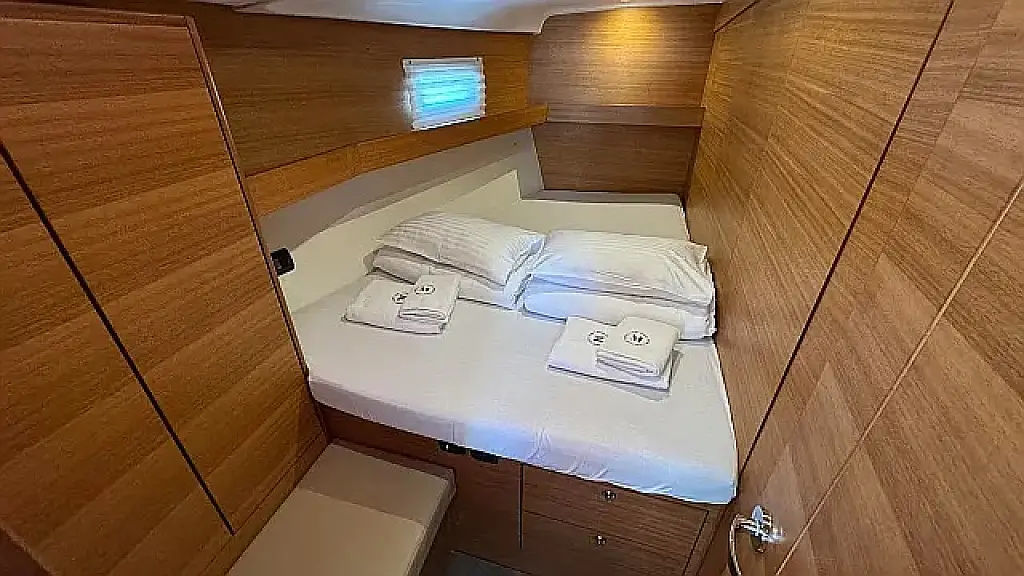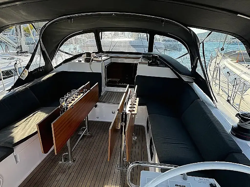 Luftkonditionering, Simplattform, Soltak, cockpitkuddar, Sittbrunnshögtalare, Gummibåt, Kylskåp, Elektrisk toalett, Värmare, Septiktank, Sprayhood, teak cockpit, Wi-Fi och Internet