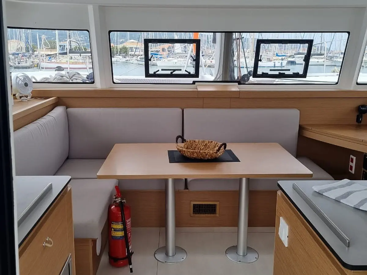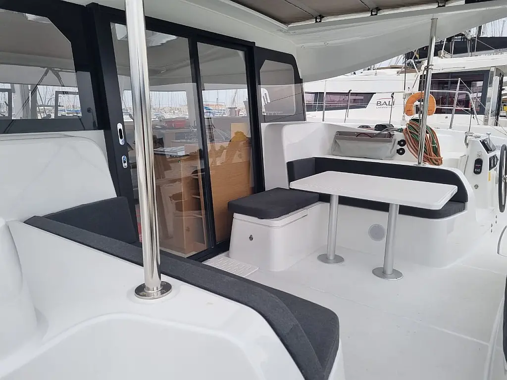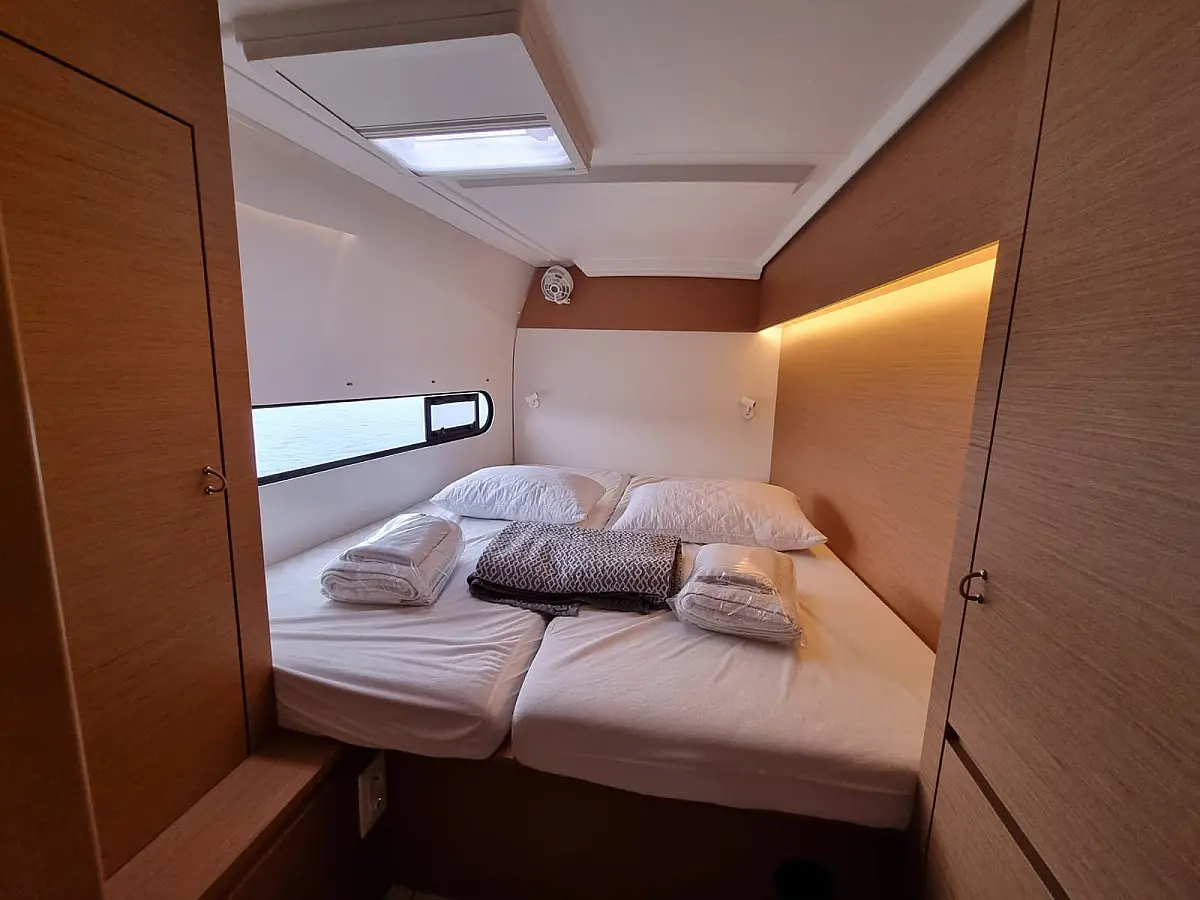 Luftkonditionering, Soltak, cockpitkuddar, Sittbrunnshögtalare, Gummibåt, Kylskåp, Generator, Värmare, Septiktank, Inverter, Utombordsmotor, solpaneler, teak cockpit, Wi-Fi och Internet