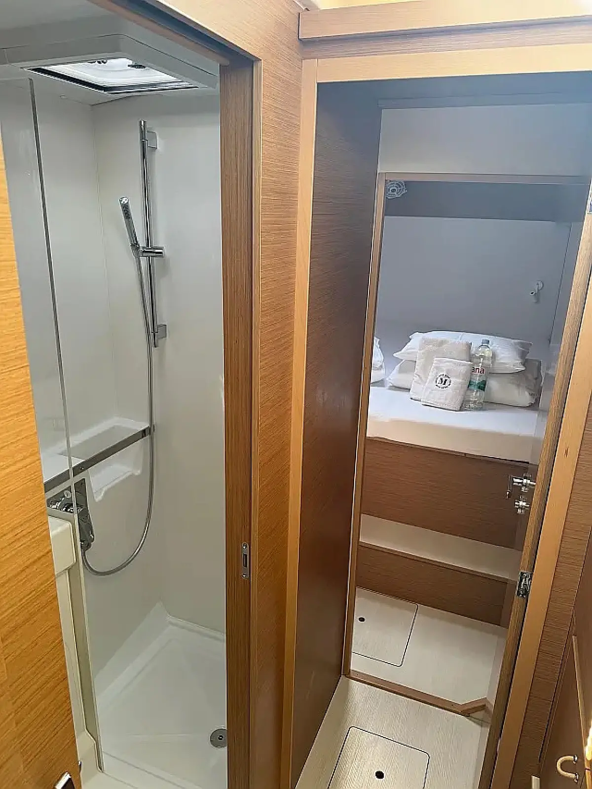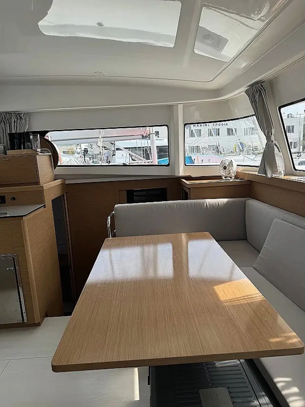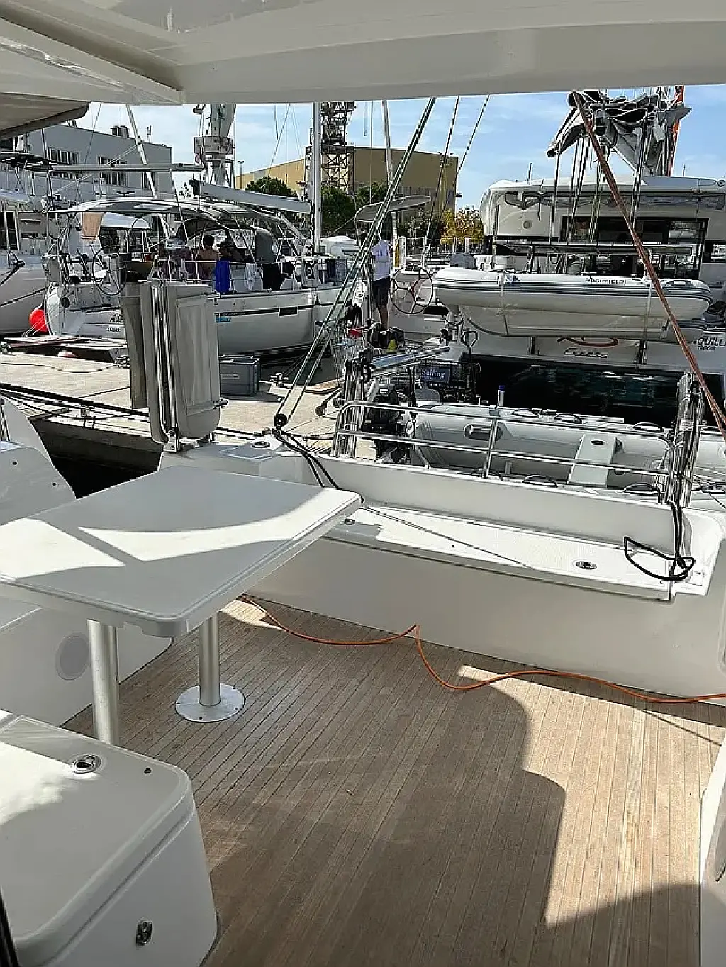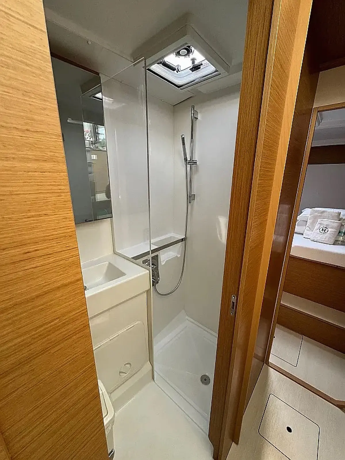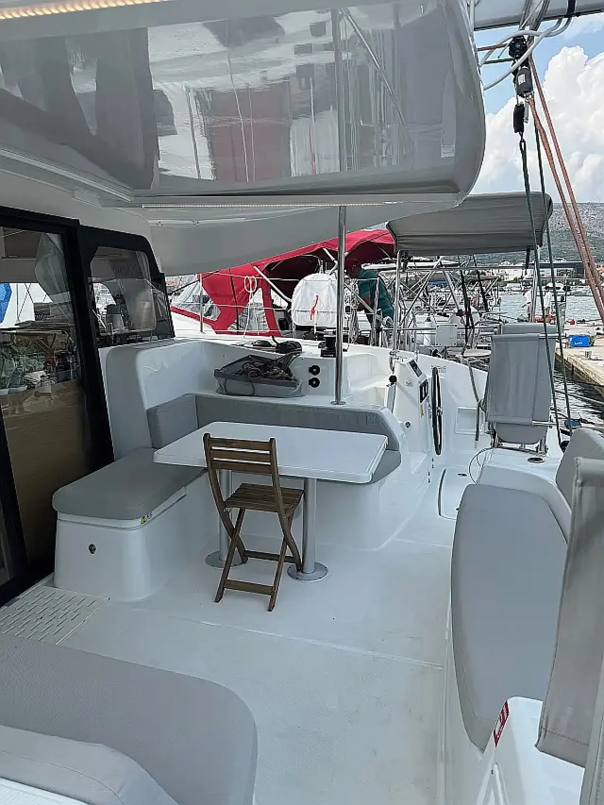 Luftkonditionering, Soltak, cockpitkuddar, Sittbrunnshögtalare, Gummibåt, Kaffemaskin, Kylskåp, Elektrisk toalett, Generator, Värmare, Septiktank, Inverter, Utombordsmotor, solpaneler, Wi-Fi och Internet