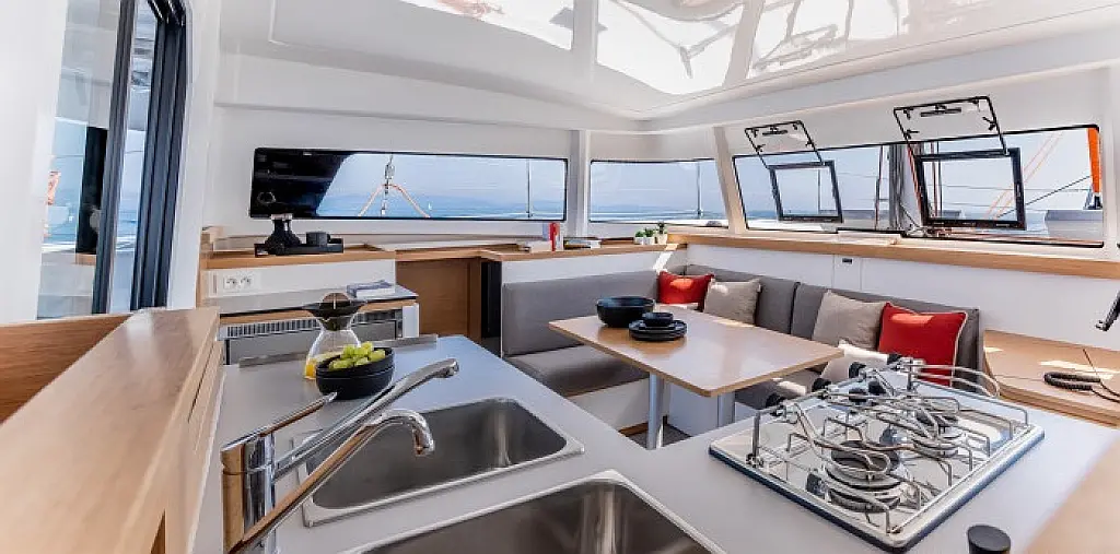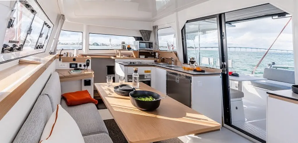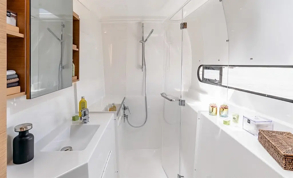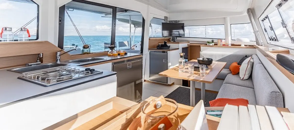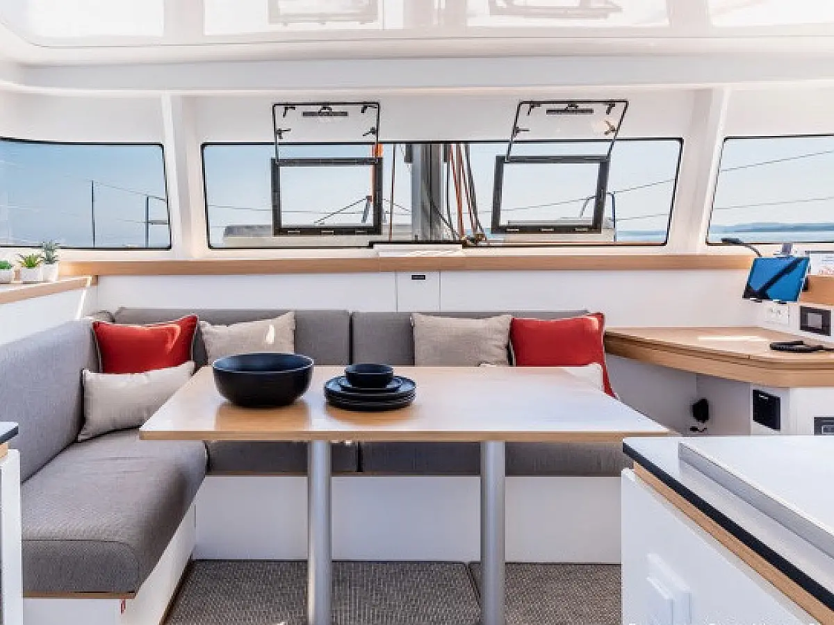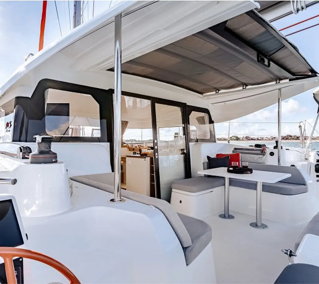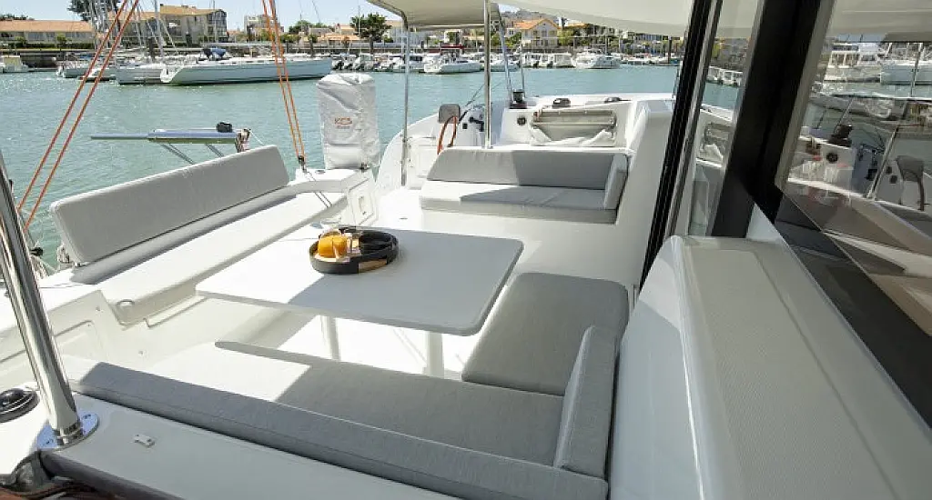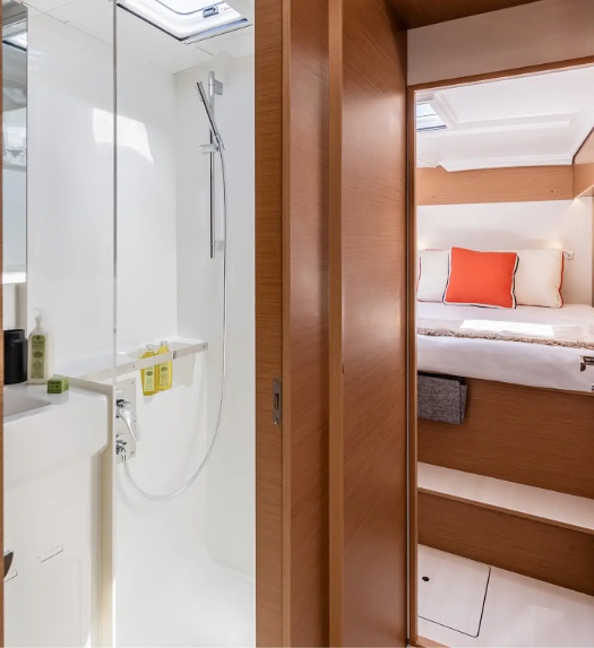 Luftkonditionering, Soltak, cockpitkuddar, Sittbrunnshögtalare, Gummibåt, Kylskåp, Generator, Värmare, Septiktank, Inverter, Utombordsmotor, solpaneler, teak cockpit, Wi-Fi och Internet
