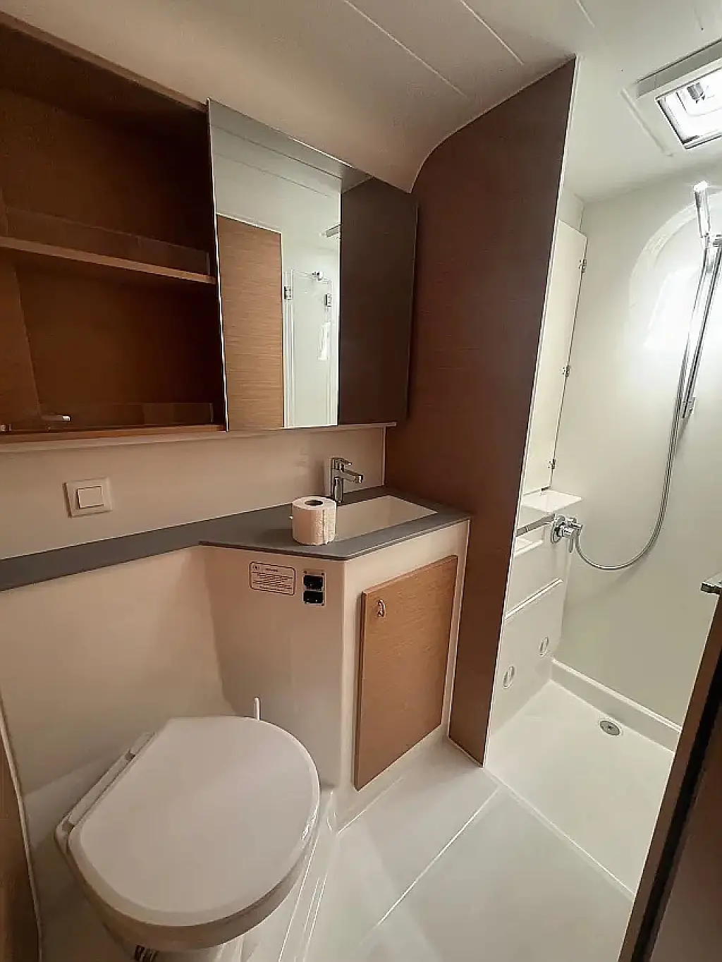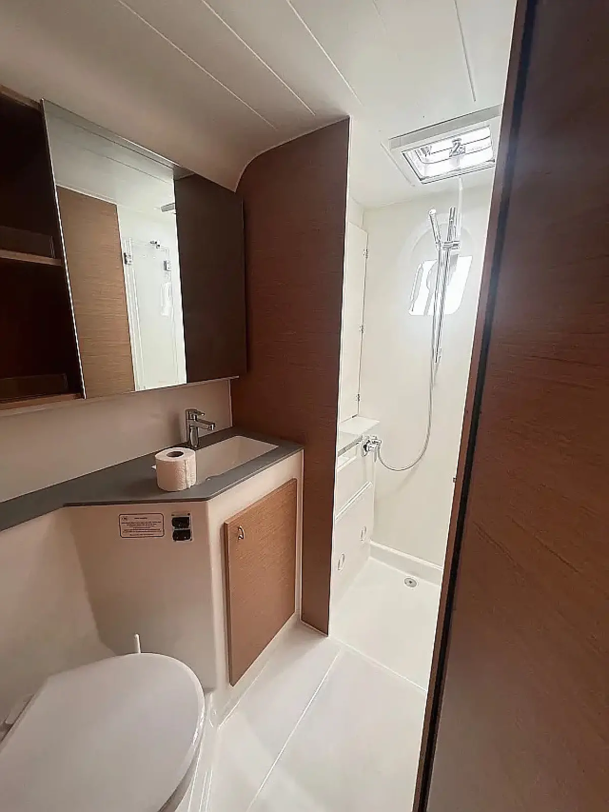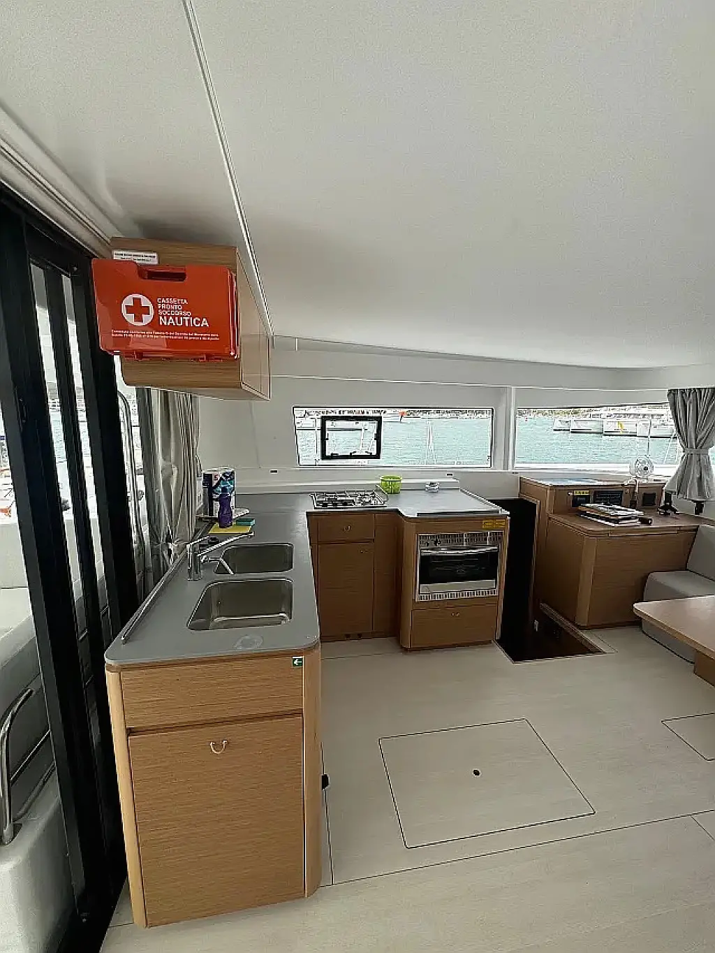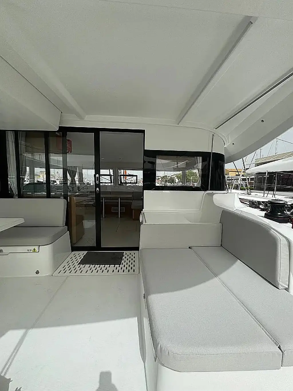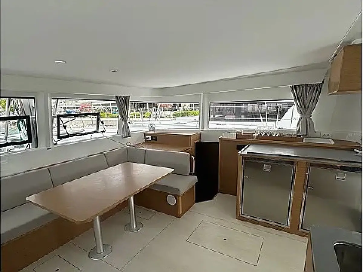 Luftkonditionering, Soltak, cockpitkuddar, Sittbrunnshögtalare, Gummibåt, Kylskåp, Elektrisk toalett, Generator, Värmare, Septiktank, Inverter, Utombordsmotor, solpaneler, Wi-Fi och Internet, Kaffemaskin