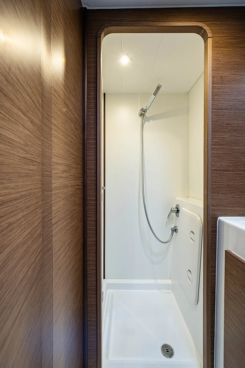 Septiktank, Soltak, Gummibåt, Sittbrunnshögtalare, Elektriska vinschar, Elektrisk toalett, Luftkonditionering, Generator, cockpitkuddar, Sprayhood, Simplattform, solpaneler