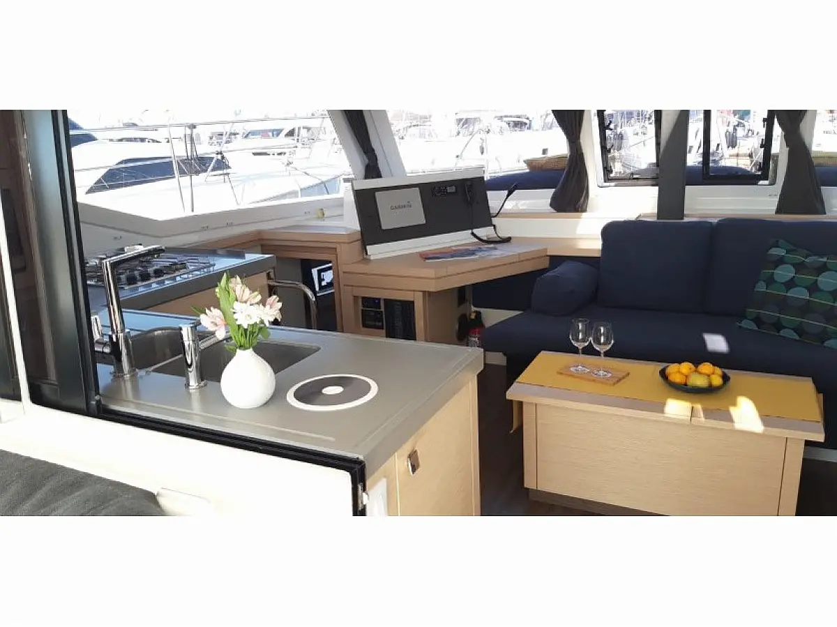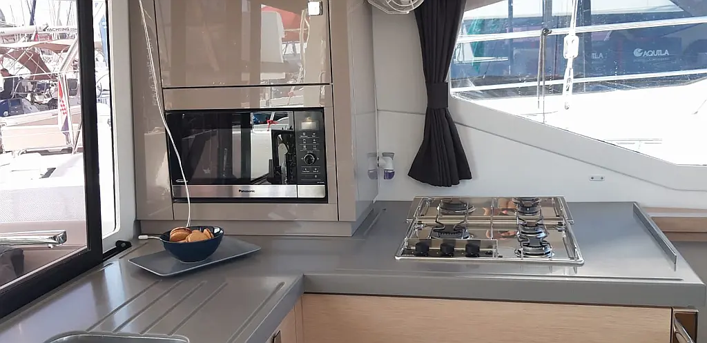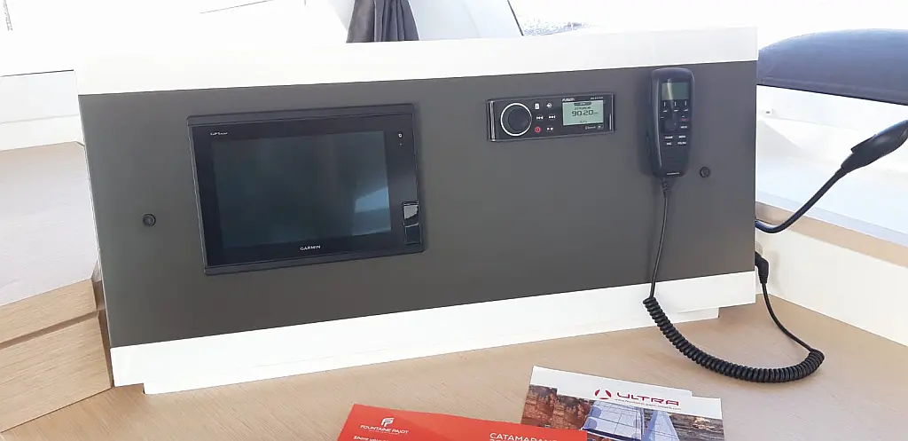 Generator, Luftkonditionering, Värmare, vatten maker, Kaffemaskin, Tvättmaskin/torktumlare, Gummibåt, Elektriska vinschar, Inverter, Soltak, Sittbrunnshögtalare, cockpitkuddar, Kylskåp